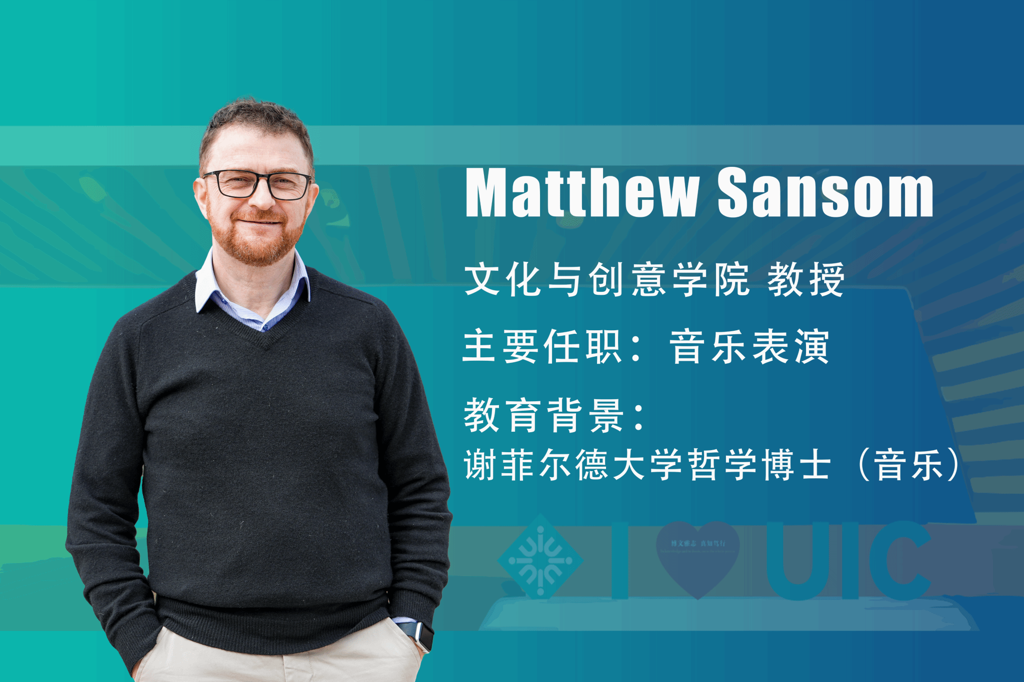Sansom教授在文化与创意学院教授新媒体音乐创作和影视音乐创作等课程。“学生们乐于学习,也很热情,经常在课后表达对课程的喜爱,让我感到很温暖。”他计划接下来在课程中引入更多互动和小组讨论,鼓励学生更积极地参与课堂。