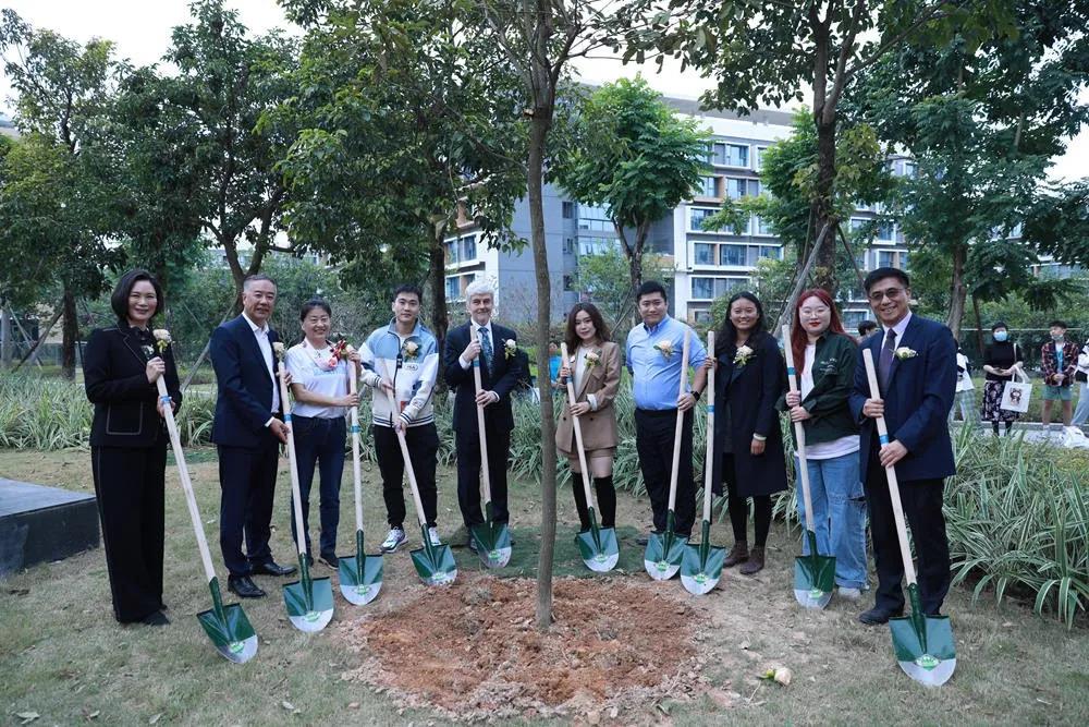 活动当天,校长汤涛教授、常务副校长陈致教授等校领导和校友、家长、在校生代表共同在位于T8教学楼前的四维校友同心林种下五棵黄花风铃木。