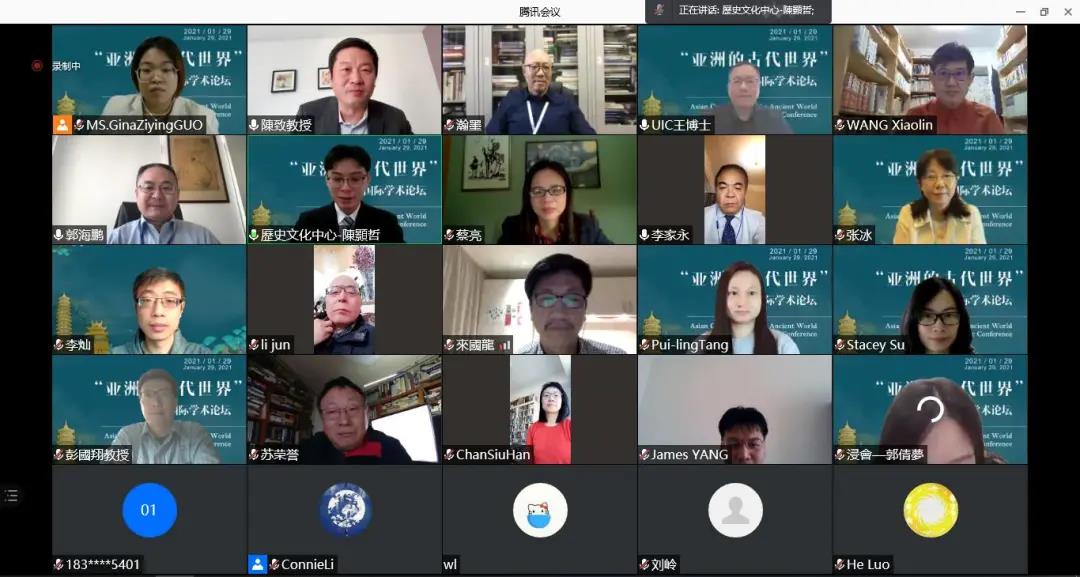2021年1月29日,第一届“亚洲的古代世界”国际学术论坛在线上举行。本次论坛由北京师范大学(BNU)人文和社会科学高等研究院历史文化研究中心、北师港浸大(UIC)通识教育办公室联合主办。来自新加坡,印度,澳大利亚,美国,匈牙利,意大利,英国以及中国北京、浙江、香港、台湾地区的学者分享了25篇古文明领域的最新研究论文。