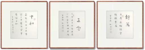“凝远阁”挂有《中和》《正念》《静笃》三幅书法作品,分别阐释“儒、释、道”的观点