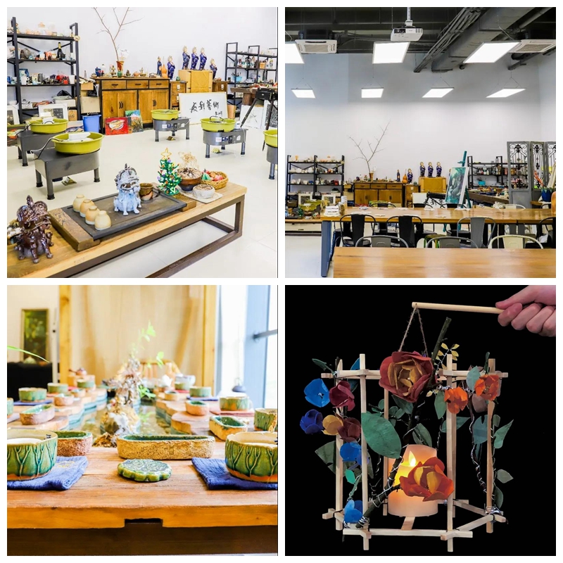 在陶艺工作室里,师生不仅可以制作属于自己的艺术品,还可以围坐在曲水流觞茶台品茶畅聊。作为种类丰富的选修课程之一,陶瓷艺术课为学生传承和发扬中国传统文化技艺提供了又一途径。除了陶瓷艺术课程,在陶艺工作室也开设古法纸艺等艺术体验课程。