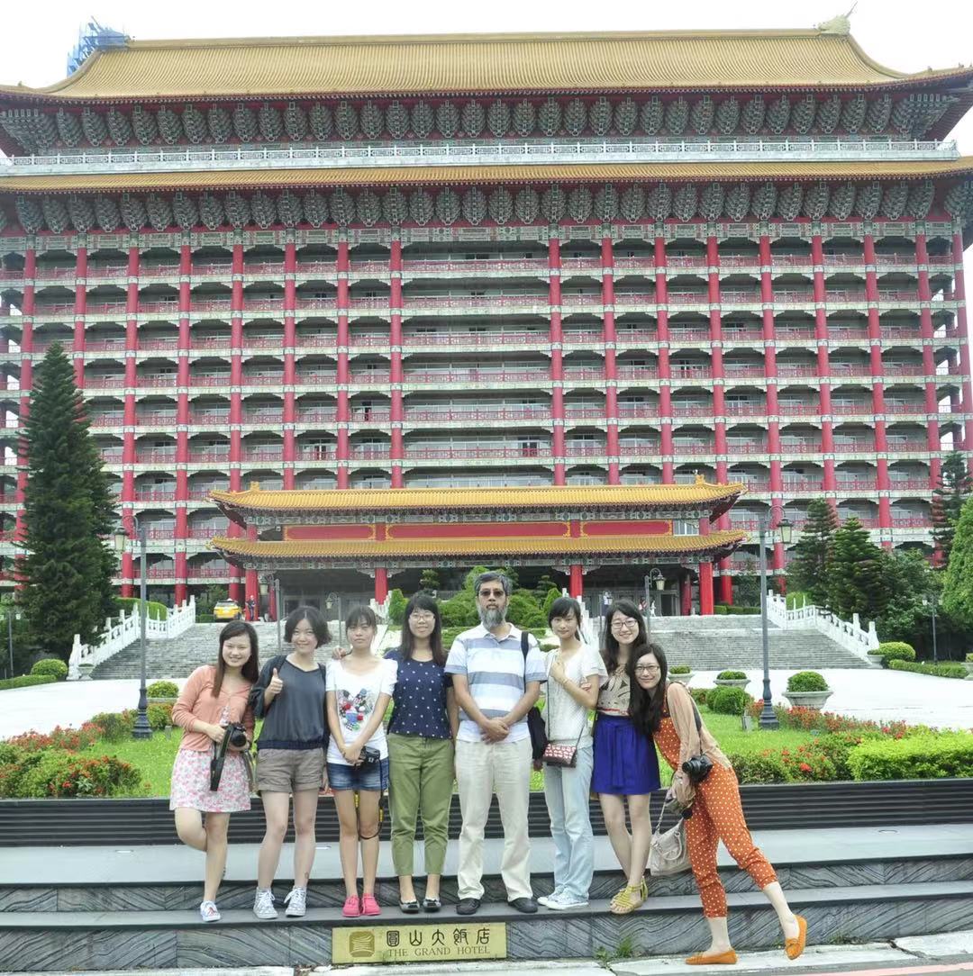 在台湾游学时,孙若玉(右二)等同学与副教授阮纪宏(右四)合影