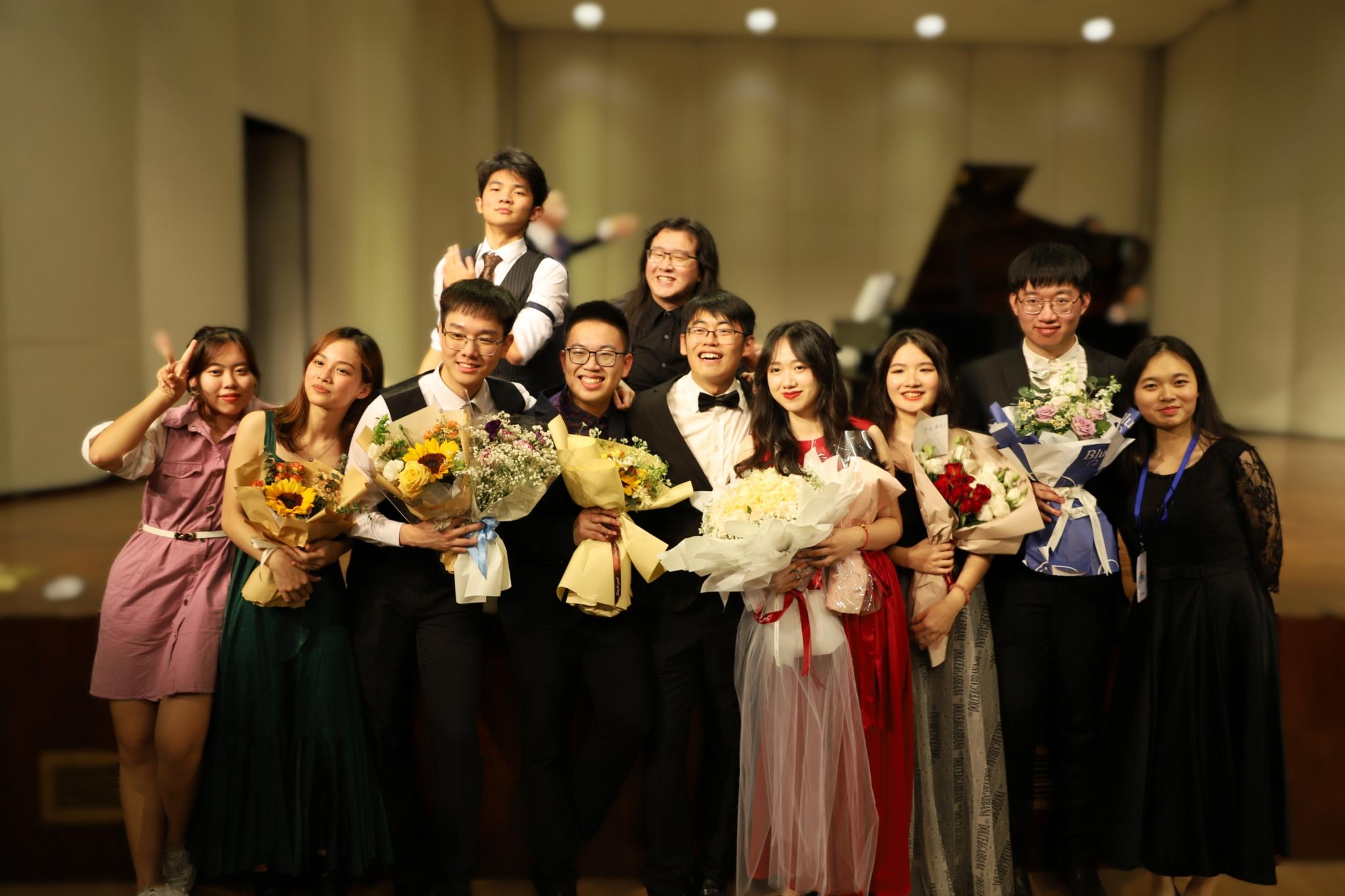 林菁(右三)与同伴参加UIC管弦乐团毕业音乐会