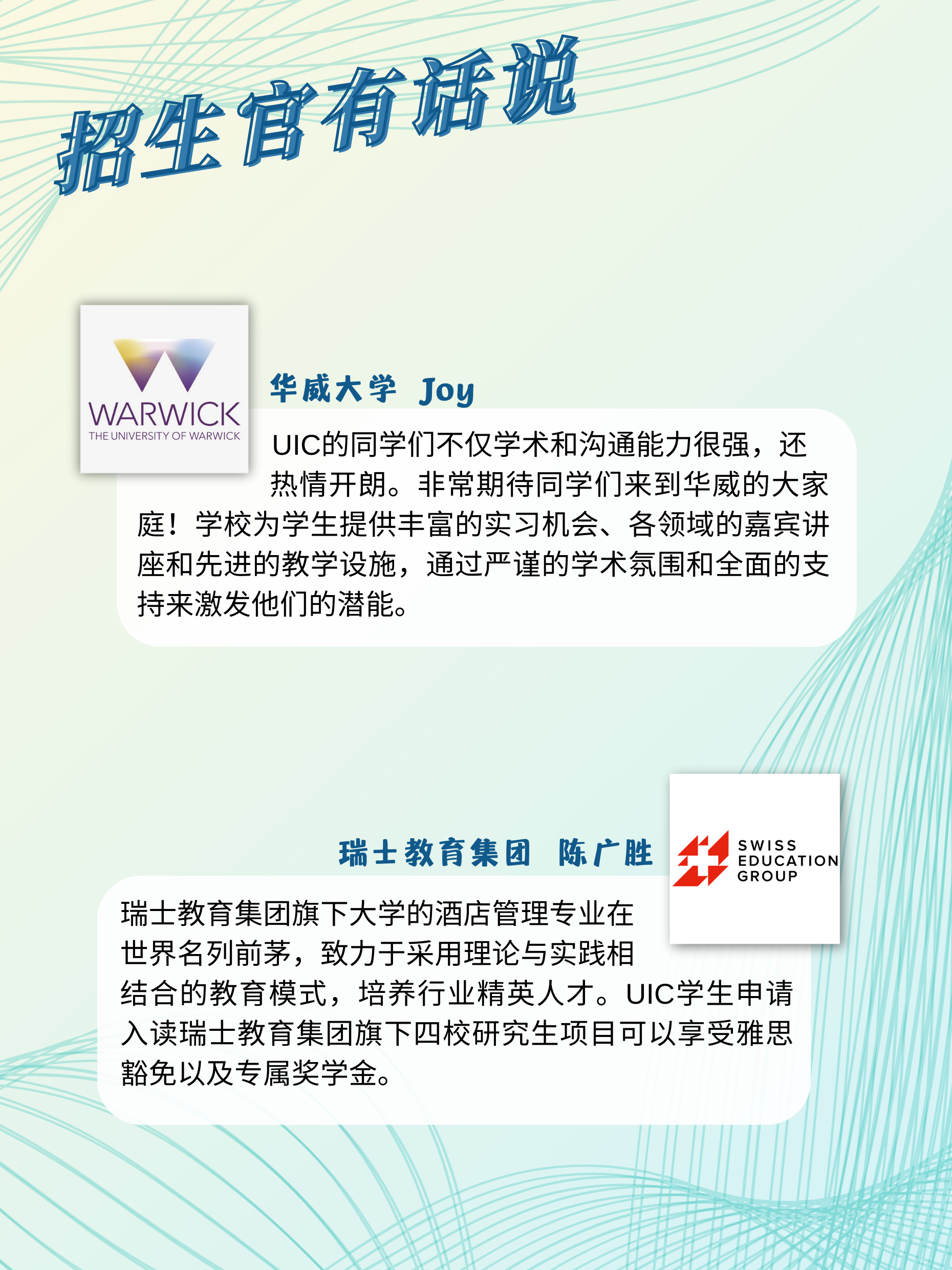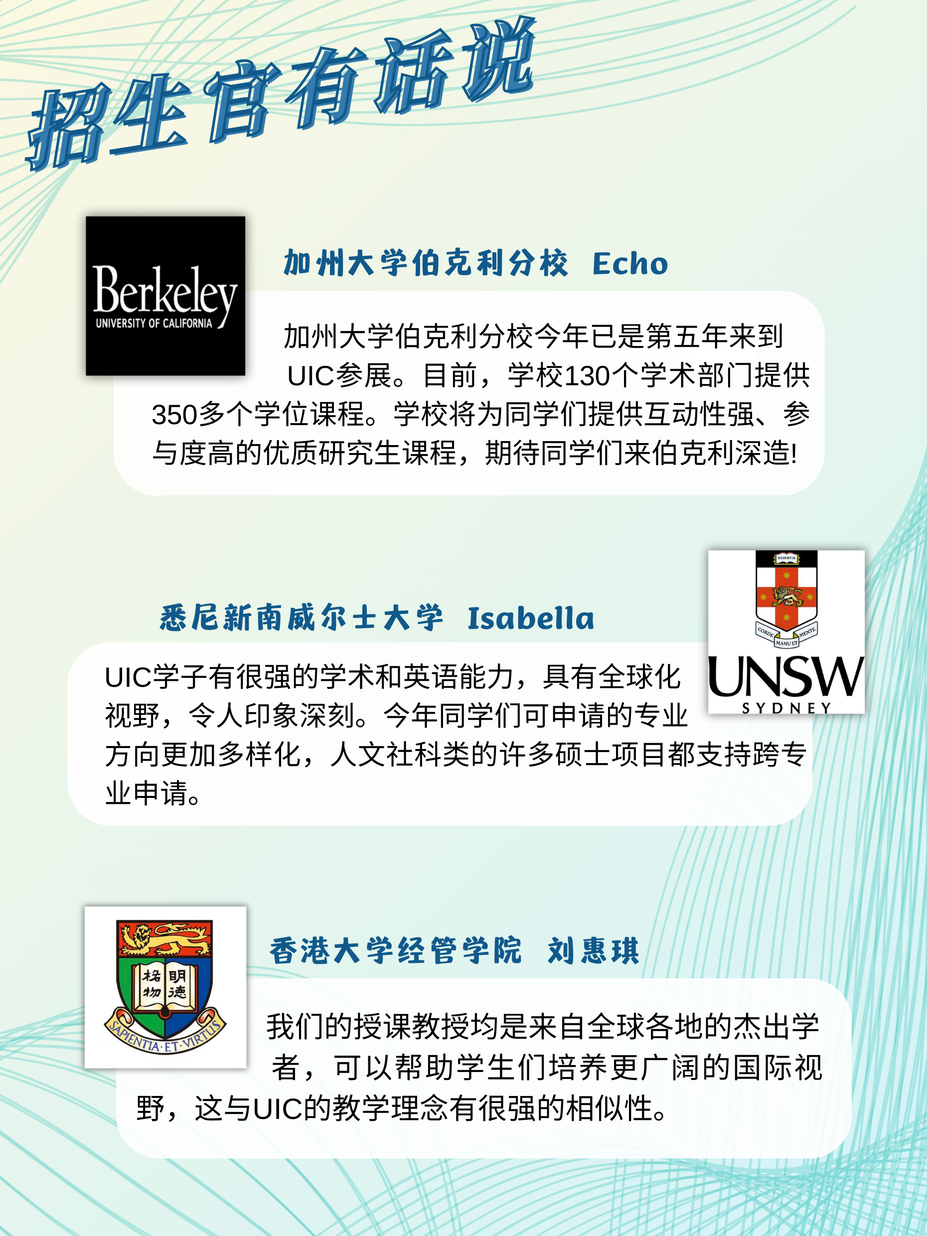 加州大学伯克利分校、多伦多大学、悉尼新南威尔士大学、香港大学、华威大学等60所高校和机构参展,为UIC学子搭建直接了解优质高校研究生项目的平台。