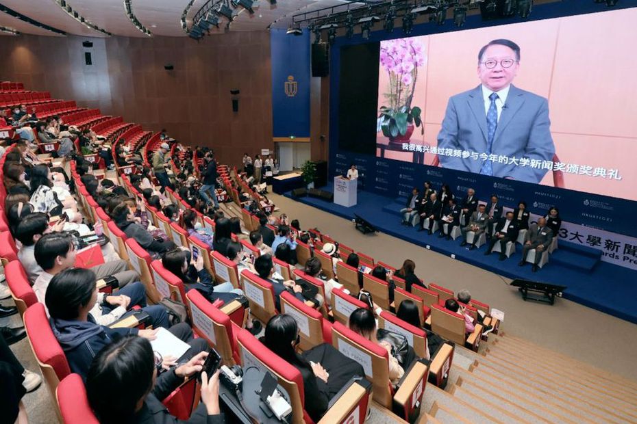 香港特别行政区政务司司长陈国基在颁奖典礼上发表视频致辞,他提到专业的新闻人需要具备“硬”知识和“软”技巧,充分认识和理解社会议题,培养敏锐的新闻触觉、秉持专业的新闻操守,以推动社会进步和发展为目标。