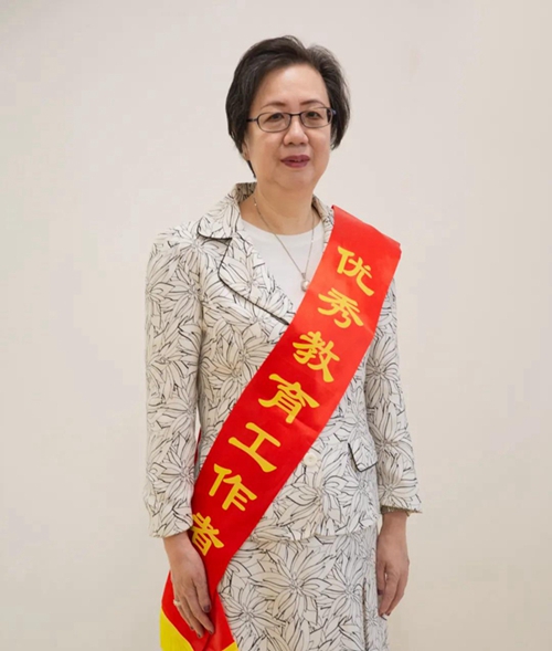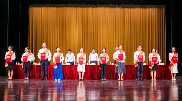 左龙佩兰教授(左五)在表彰大会现场(图源珠海市教育局)