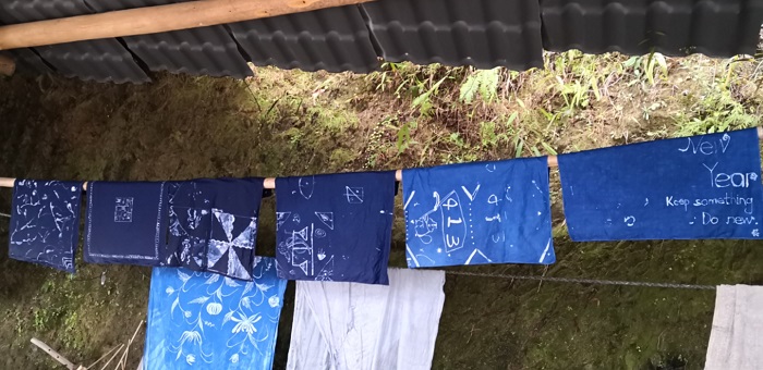 团队在贵州黔东南丹寨县排莫村学习蜡染时的作品