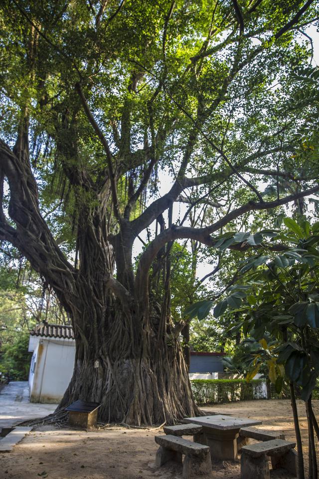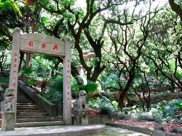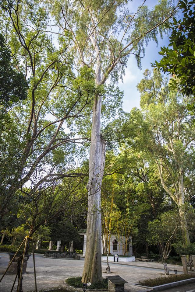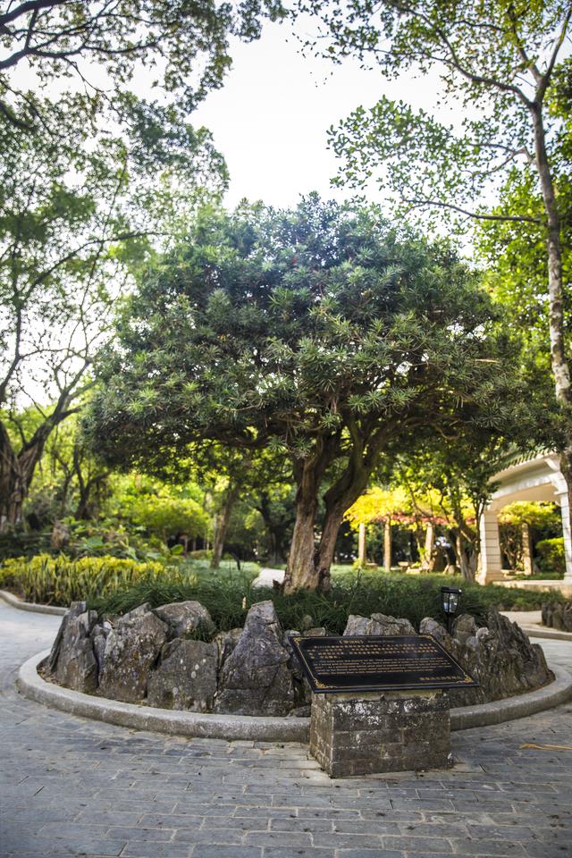 园内有株罗汉松是盆景植物,乃唐绍仪1910年建园时栽种的;有棵国内稀有的日本树种黑松,是孙中山先生赠送的。园内还有一株大树是京剧大师梅兰芳1931年参观游览时亲手种植,此树虽历经沧桑,仰观却像一群少女随风飘舞,所以被称为“美人树”。另有一株浓荫如盖的大榕树,竟然是生长在一座2米高的塔上。这座石塔是唐绍仪修园时所筑,后来小鸟叼来的榕树籽在塔里萌芽,长出一棵榕树,榕树根将石塔四周都圈满了,这株“盘石孤榕”成了园中一景。