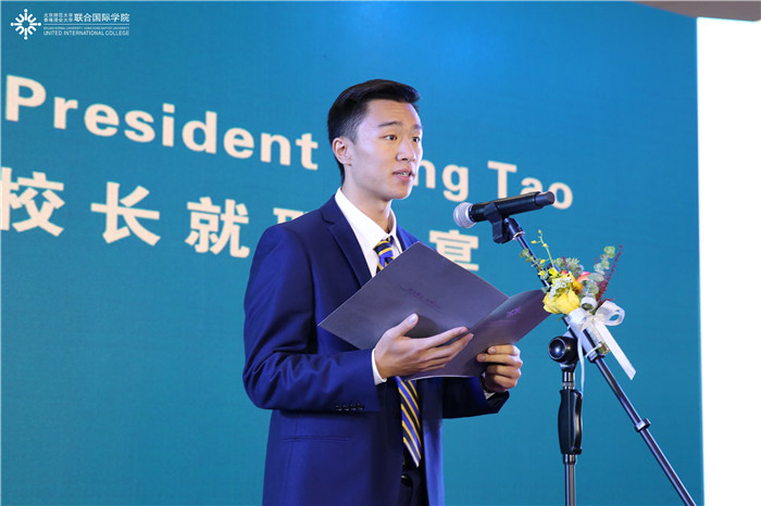 学校的发展是学生、校友、家长共同见证的。学生会干事会的主席、大三公共关系与广告专业的温灿代表北师港浸大学生对汤涛校长的上任表达了真诚的欢迎。