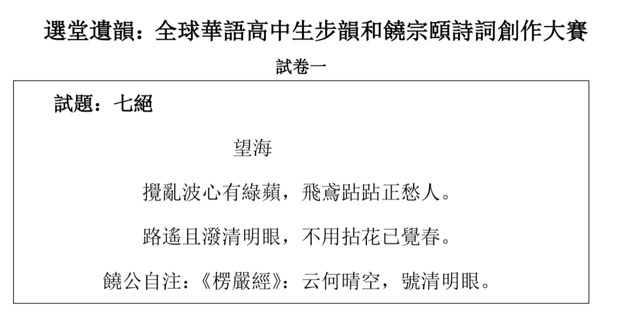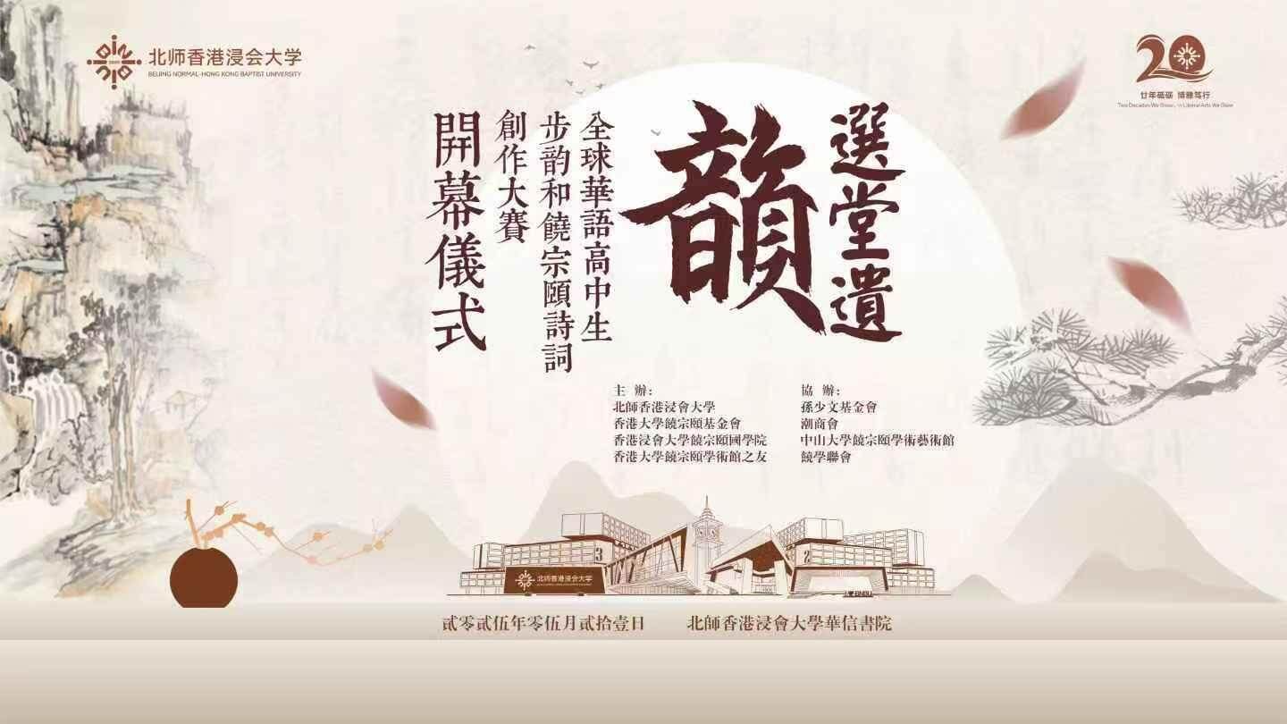 秉承饶宗颐教授治学精神,弘扬中国传统文化,涵育诗词新生力量,5月21日,在北师香港浸会大学建校20周年之际,“选堂遗韵:全球华语高中生步韵和饶宗颐诗词创作大赛”(以下简称诗词大赛)在北师香港浸会大学开幕。