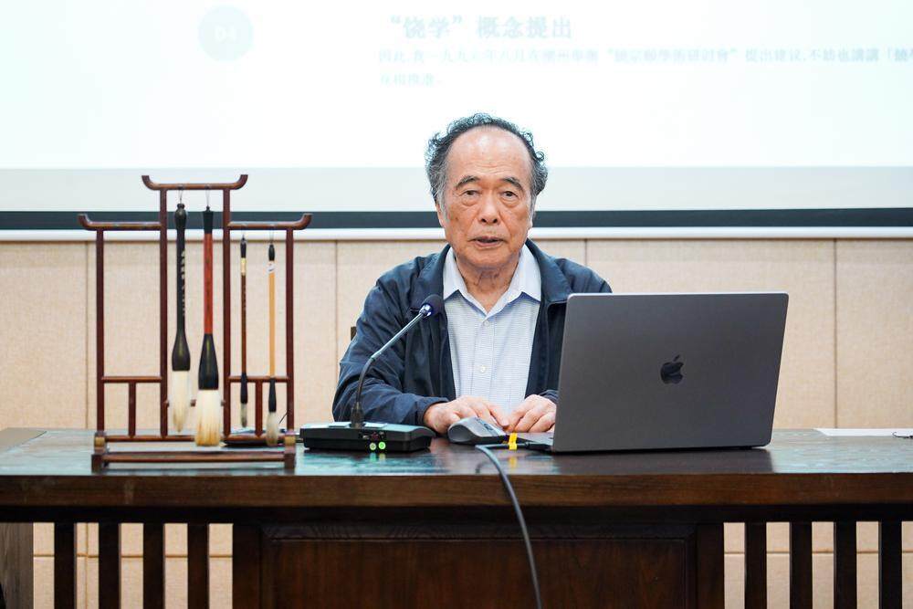 开幕式后,词学专家、澳门大学教授施议对带来了《饶宗颐先生步韵和诗释例》的精彩讲座。施议对围绕饶宗颐的生平、创作思想和艺术技巧,以大量案例深入解读了饶宗颐诗词的精妙之处。据悉,大赛总共设置了三场“饶宗颐诗词”专题讲座,希望通过相关讲座让喜爱诗歌的青年学会鉴赏并创作传统诗词。剩余两场讲座将安排在暑假期间开设。讲座与展览线上线下同步开展,免费开放,欢迎社会各界传播文化和饶学爱好者参加。