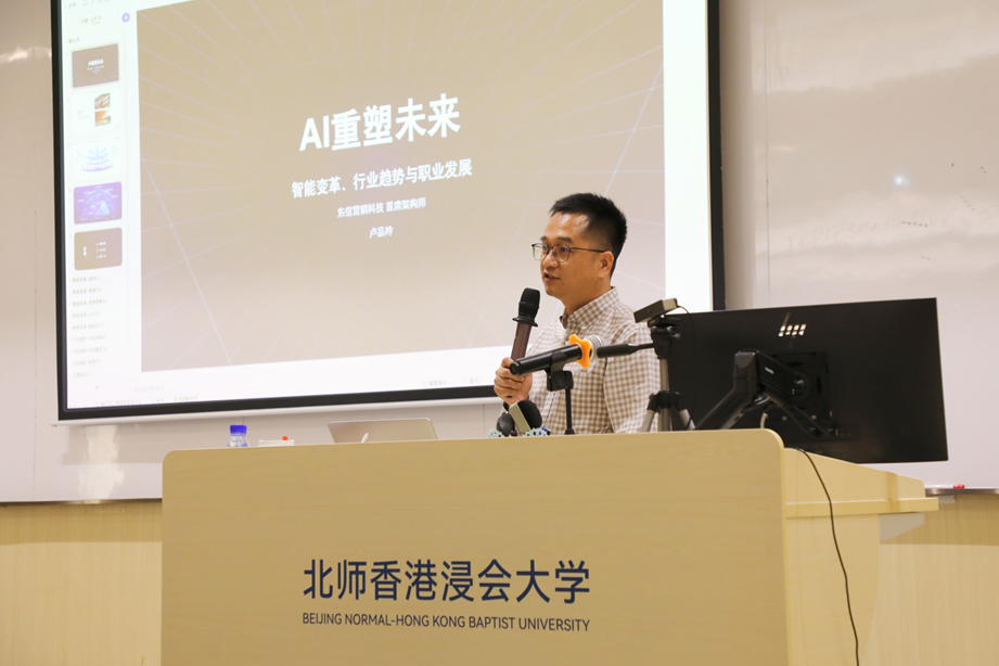 本期讲座聚焦人工智能前沿趋势,特邀东信营销科技集团首席架构师卢品吟进行授课,围绕“AI重塑未来:智能变革、行业趋势与职业发展”主题展开分享,现场吸引了近百位师生参与。