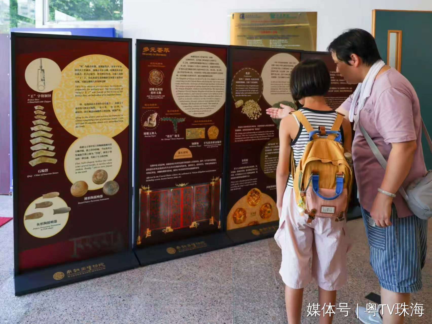 观众在北师香港浸会大学(BNBU)雅乐团全球巡演香港站场外展板区了解句鑃、楚式器物与南越文物等相关知识