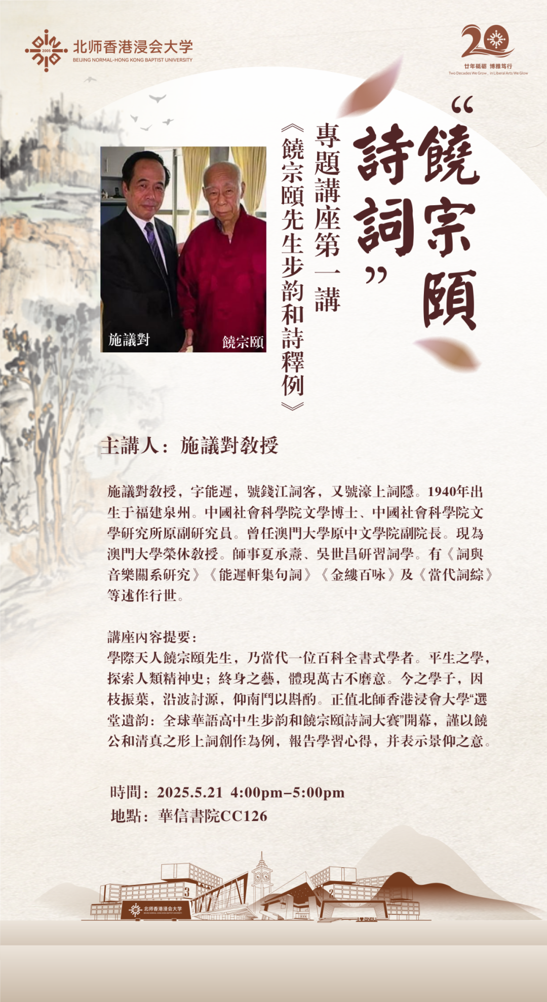 11月18日,让我们相聚北师香港浸会大学吴清辉伉俪演艺厅,在深秋收获的季节,共同见证诗词与青年的美妙和鸣。
