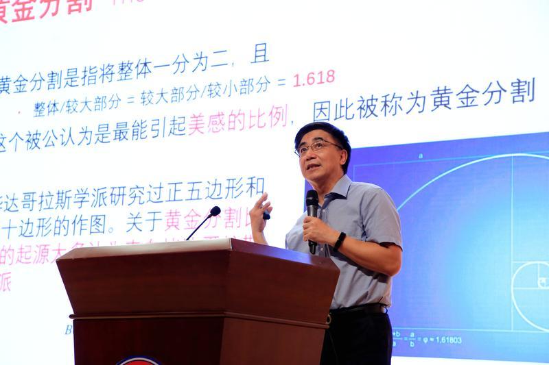 揭牌仪式后,汤涛院士为纪中师生作题为《高科技时代的数学与艺术》的讲座,从“艺术中的数学”“数学中的艺术”“高科技时代的数学与艺术”三部分畅谈自己对数学与艺术的理解。汤涛院士还着眼于当下科技迅速发展的高科技时代,分享了数学在计算机图像、3D打印、视觉艺术、投影等方面的应用,带领大家感受数学与艺术交融的魅力。