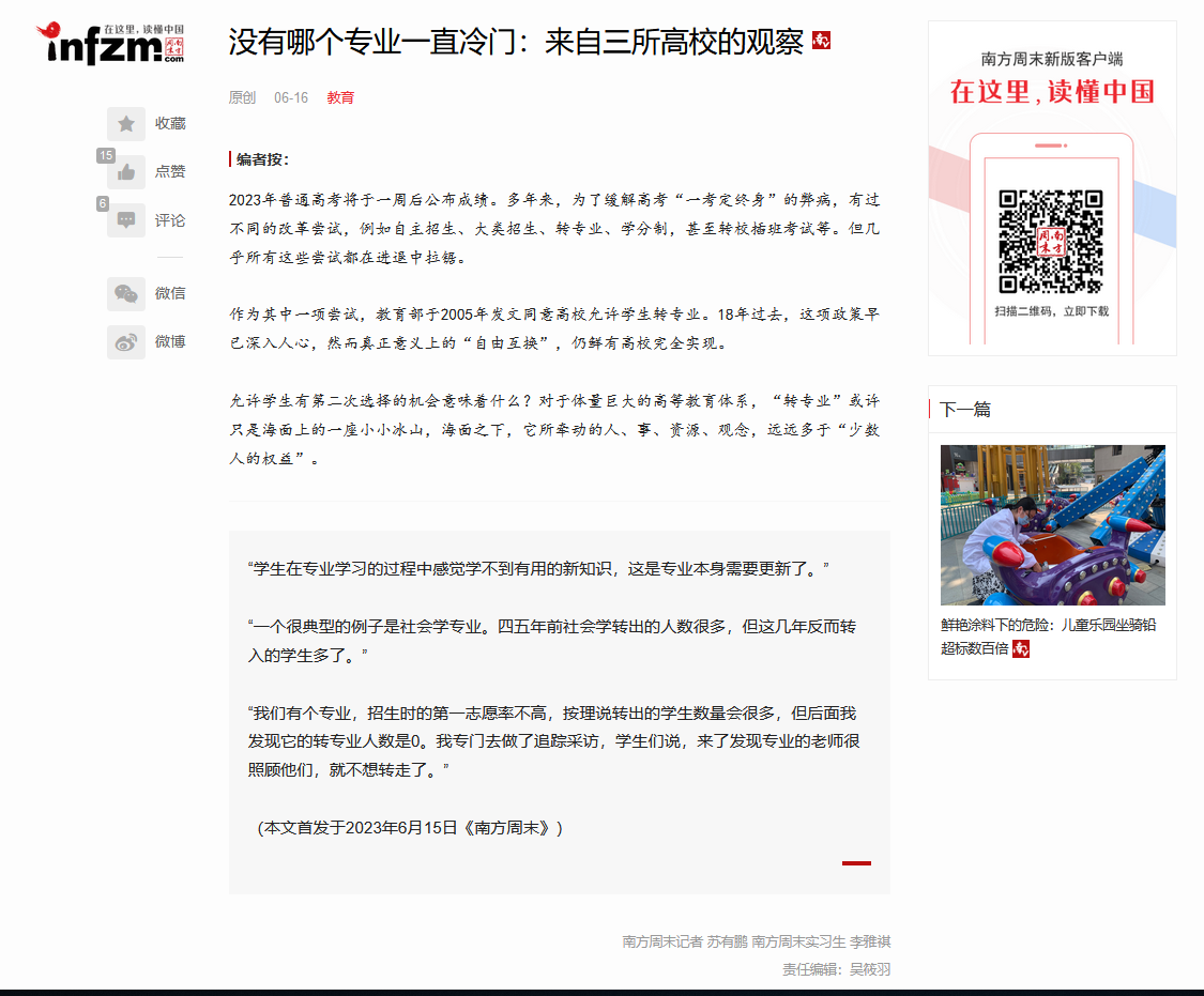 南方周末:许多学校在放开转专业限制时,会担心出现冷热门专业不均衡的现象,你如何理解冷门专业?