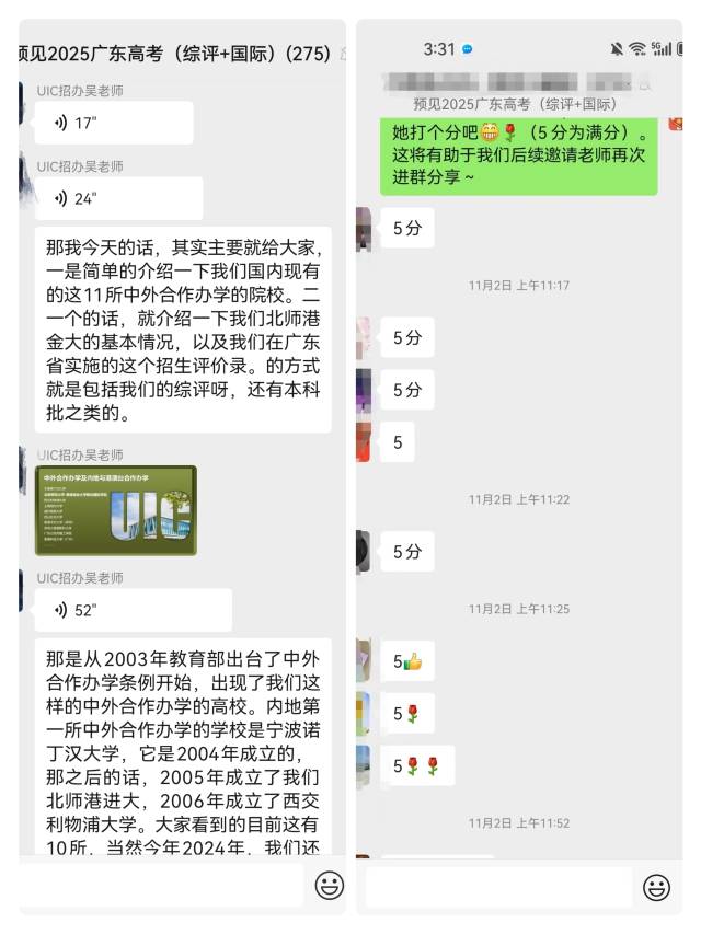 很快,北师港浸大的招办副主任吴苏芬老师进群分享学校招生政策及报考技巧。