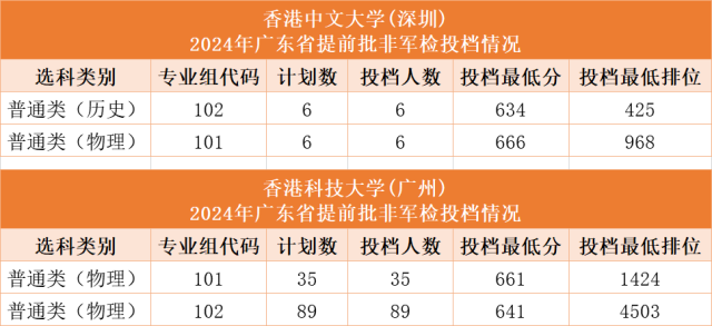 ·想要报考第二类(即采用“提前批-非军检”的招生模式)的考生要知道:香港中文大学(深圳)文理兼招。香港科技大学(广州)仅招普通类(物理)考生。这个批次报考一旦没被录取,不影响后面本科批次的招生。