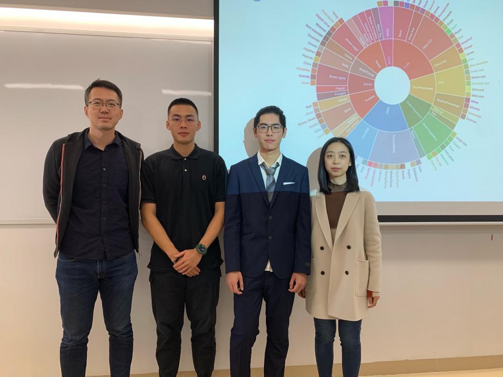李元昊(右二)和毕业研究项目队友林昊秋与理工科技学院轩辕哲博士(左一)、孟蕊博士(右一)合影