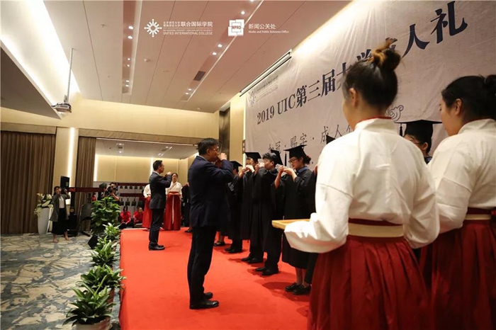 “礼”是中国文化的特质。作为中国人世俗行为的准则,“礼”贯穿传统中国人的一生。冠礼(成人礼)是中国古代最为重要的人生礼仪之一,通常在20岁时举行。秉承博雅教育和全人教育理念,UIC沿袭古礼,并加以创新,以帮助学生提升成人的意识和对自己社会身份的认同,深化作为一个成人应该具备的对自己、家庭、社会、国家的责任感。