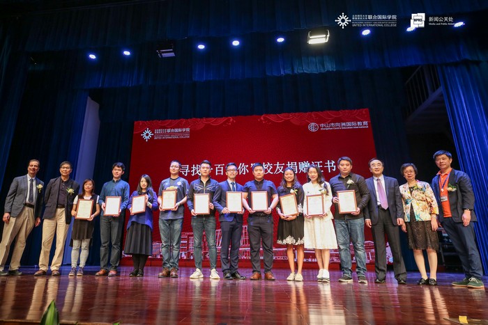 除了为首届校友颁发毕业十周年纪念牌,汤涛校长、陈致副校长、张聪副校长、魏楚雄协理副校长及各学部的院长和老师还为“寻找一百个你”、校友林、校友墙捐赠项目的校友颁发纪念证书,感谢他们对母校的回馈。当天颁奖仪式出席嘉宾还有香港浸会大学校友会会长梁贵华先生和前会长萧泰仑先生。校友企业BeePlus设立校友奖学金,每年将表彰3位在公益实践、社团实践和商业实践有突出表现的学生,鼓励他们承担更多的社会责任。
