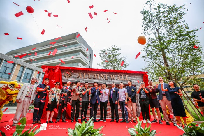 在揭幕仪式之后,现场响起了悠扬的小提琴声,师生或奏响乐器,或放声歌唱,陆续从人群中走出,深情演绎《我和我的祖国》,全场师生及校友一起挥舞手中的国旗进行大合唱,热情激昂的歌声回荡在UIC校园。在这个新老生欢聚,寓意传承的时刻,师生以一场别开生面的音乐快闪献礼即将到来的新中国70华诞。