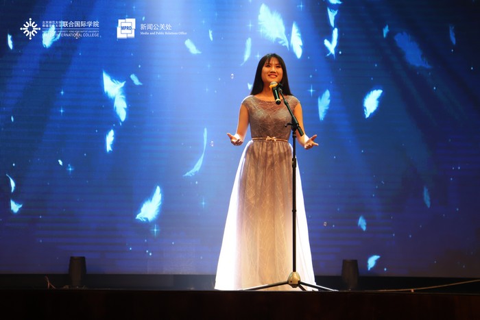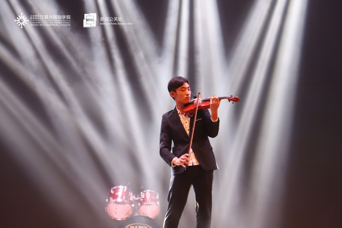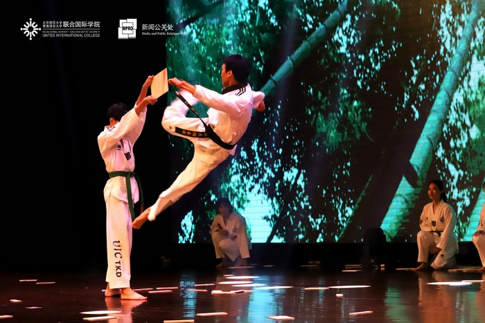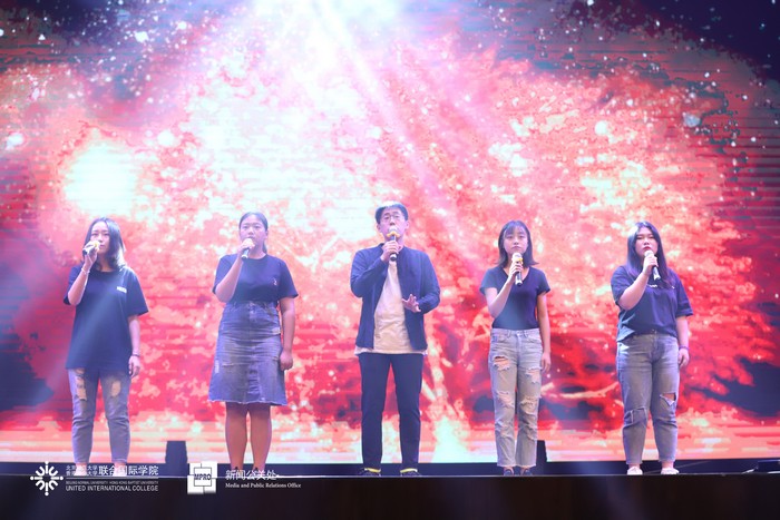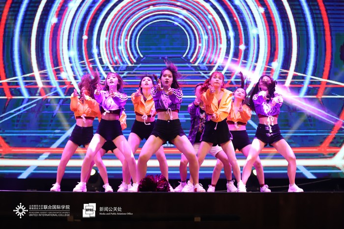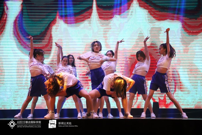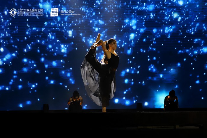 IMUSIC音乐社用一曲温暖的《春风十里》串烧着热情的《你要跳舞吗》,正式拉开了晚会表演的序幕。节奏明快的rap所代表的流行乐、优雅的小提琴曲、美声歌曲所象征的古典乐,碰撞出了精彩的火花;悠扬动人的歌唱和热血利落的街舞,带来了听觉视觉的双重盛宴。民乐合奏和跆拳道一文一武的表演引起师生们的连连惊叹;幽默诙谐的舞台剧更是逗得全场阵阵笑声。紧跟在轻盈灵动的现代舞《追光者》与充满活力的啦啦队表演之后的,是2018级UIC环境科学专业新生的大合唱《夜空中最亮的星》,晚会随之落下了帷幕。