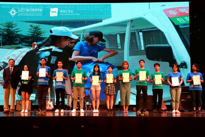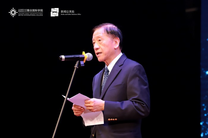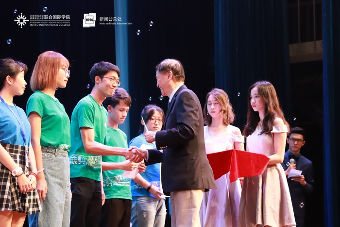 晚上七点,大学会堂五彩斑斓的灯光亮起,在同学们热情的掌声中,吴清辉校长发表了迎新致辞。他表示,今年的迎新晚会非常特别,作为学生活动的重要名片,首次在新校园的大学会堂举办。同时,校长也鼓励学生们积极参与学校的各类课外活动,体验UIC多元的校园文化,充实自己的人生经验。随后,吴清辉校长为今年的迎新义工代表们颁发了荣誉证书。