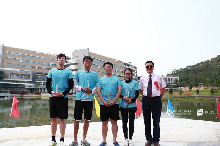 “2018龙飞凤舞UIC” 皮划艇表演赛于当日下午在中心湖开赛,分为皮划艇接力赛、花样浆板接力赛两个项目,共30位师生参加。本次比赛正是全人教育海上拓展课程的展示与延伸。海上拓展课程是采用体验式学习方式,以独木舟(kayak)基本技术、救援、团队比赛、海上远行等项目为载体,通过团队建设、实践模拟、自我突破等环节,使同学在认知、意志、决策力、领导力和奉献精神等方面得到提升。