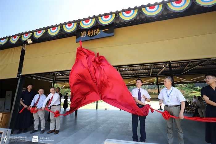 射道从2013年开始成为全人教育体验学习的一门选修课程,全新的射道馆“一阳射圃”也于当天正式揭牌。 “一阳”取自《易经》的“一阳来复”,寓意大地回春、文化复兴之意。“射圃”取自孔子与弟子举行射礼的典故。