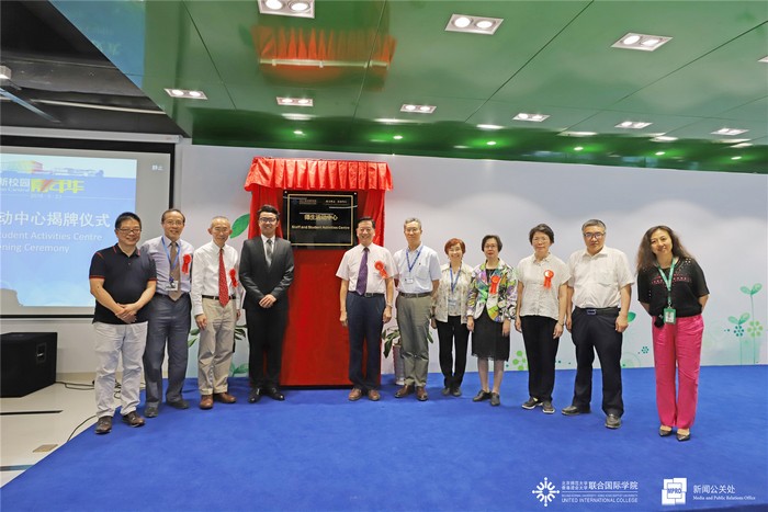 位于T4的新师生活动中心也举行揭牌仪式。秉承了“以学生为导向”的宗旨,新师生活动中心是一个互动学习的平台,具有多功能性,师生们可在这一开放的环境中自由学习和交流。该中心自投入使用以来已举办多项活动,同时也为学生会和学生社团提供办公场所。此次揭幕仪式上还举行了由秘书处主办的UIC 2018纪念品设计大赛的颁奖仪式。