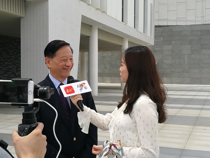 中山市华侨中学李同学和妈妈一起来到UIC,他说:“我是理科生,但对新闻专业也很感兴趣,特别是刚刚在课堂上老师展示的毕业生作品,他们研究的课题很有趣。