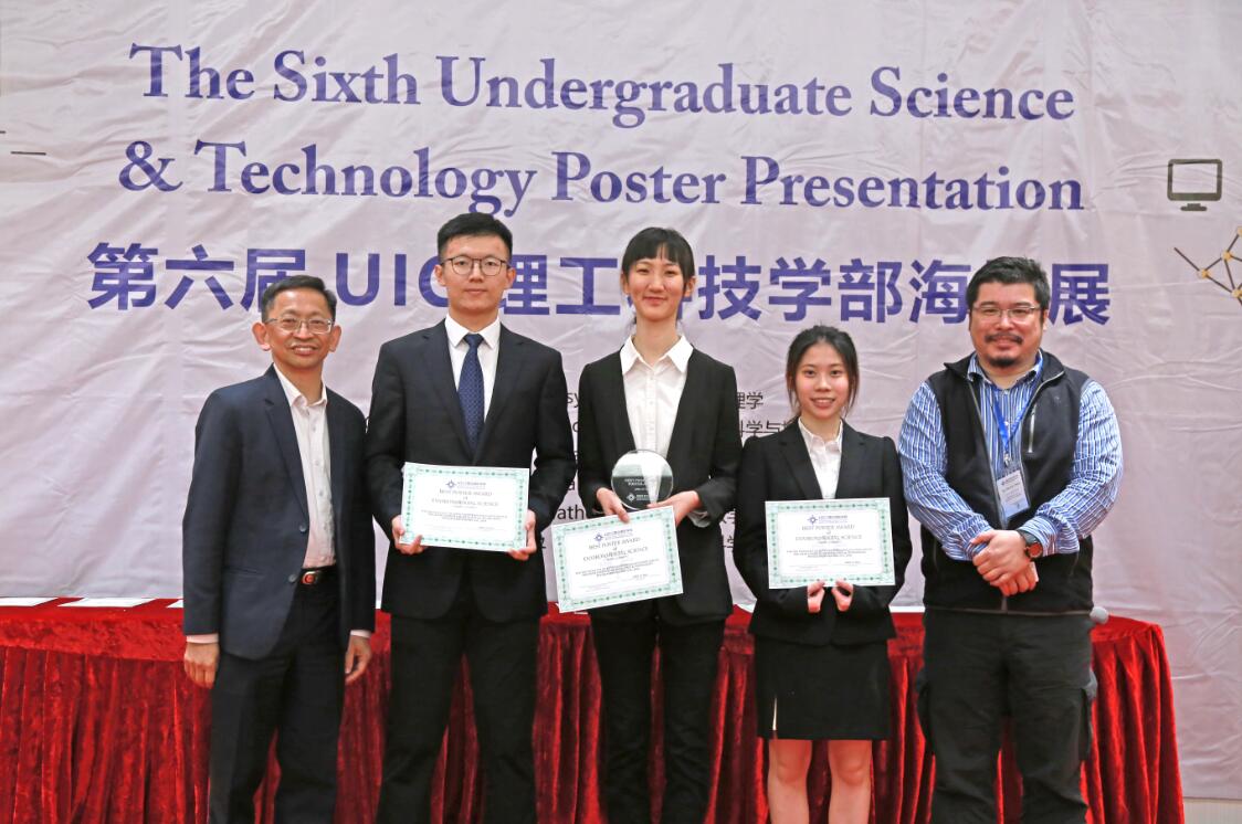 环境科学专业大四的廖安祺、王浩宇、王小毛的研究项目“珠海唐家湾贝克喜盐草及其海草床的环境特性分析”获得专业最佳海报奖