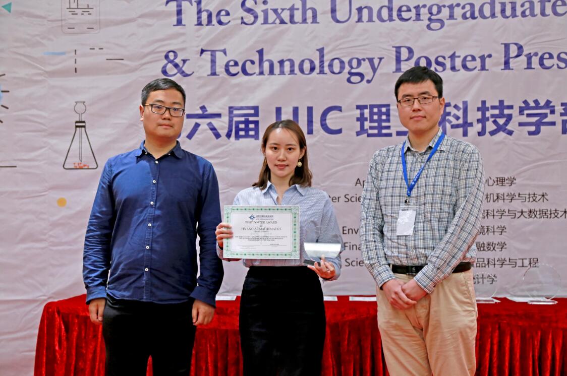 金融数学专业大四的张丰田的研究项目“公司广告投资和对市场波动敏感程度的关系:基于中国股票市场的研究”获得专业最佳海报奖