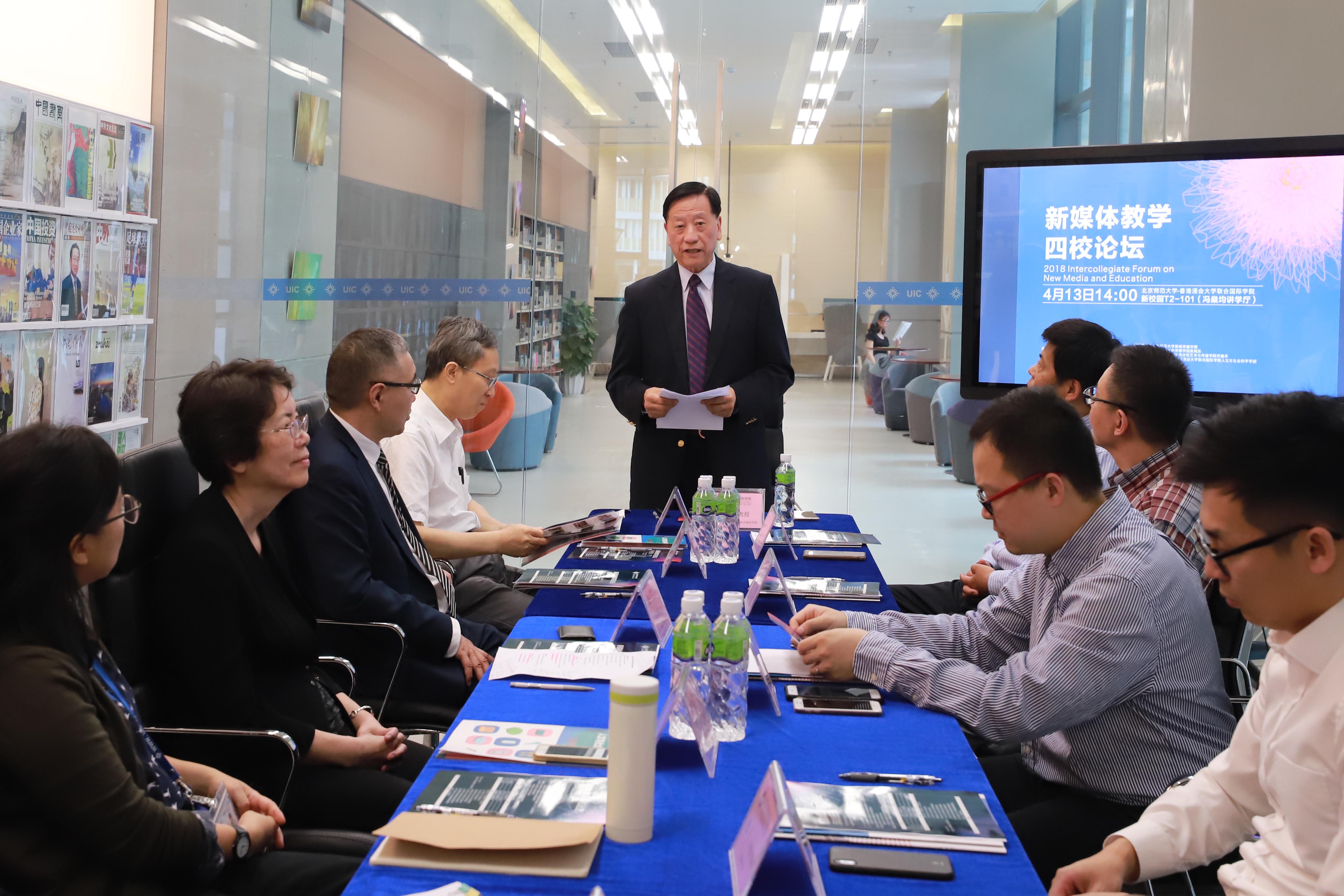 新媒体环境下如何培养新闻人才?4月13日,由UIC主办,北京师范大学新闻传播学院、香港浸会大学传理学院新闻系、北京师范大学珠海分校艺术与传播学院传媒系共同协办的新媒体教学四校论坛在UIC举行。来自四校的学者围绕新媒体教学进行探讨,这次是四校首次合办的学术活动,有助于推进并深化四校的交流合作。