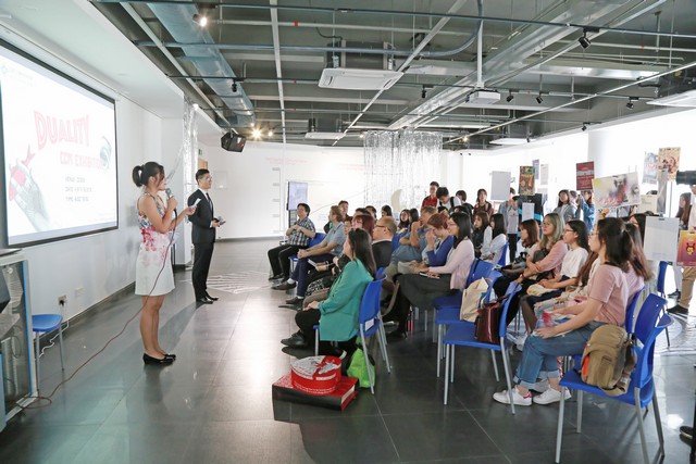 4月10日上午,由文化创意与管理专业(CCM)学会主办的2018专业年展在文化创意中心CC323展览厅举行。此次展览以“二元性”为主题,运用了大欧普艺术的元素,极具现代性。CCM同学致力于将文化与商业相融合,他们带来多样化的策划和设计作品,让观众们领略二元性的冲突与融合。