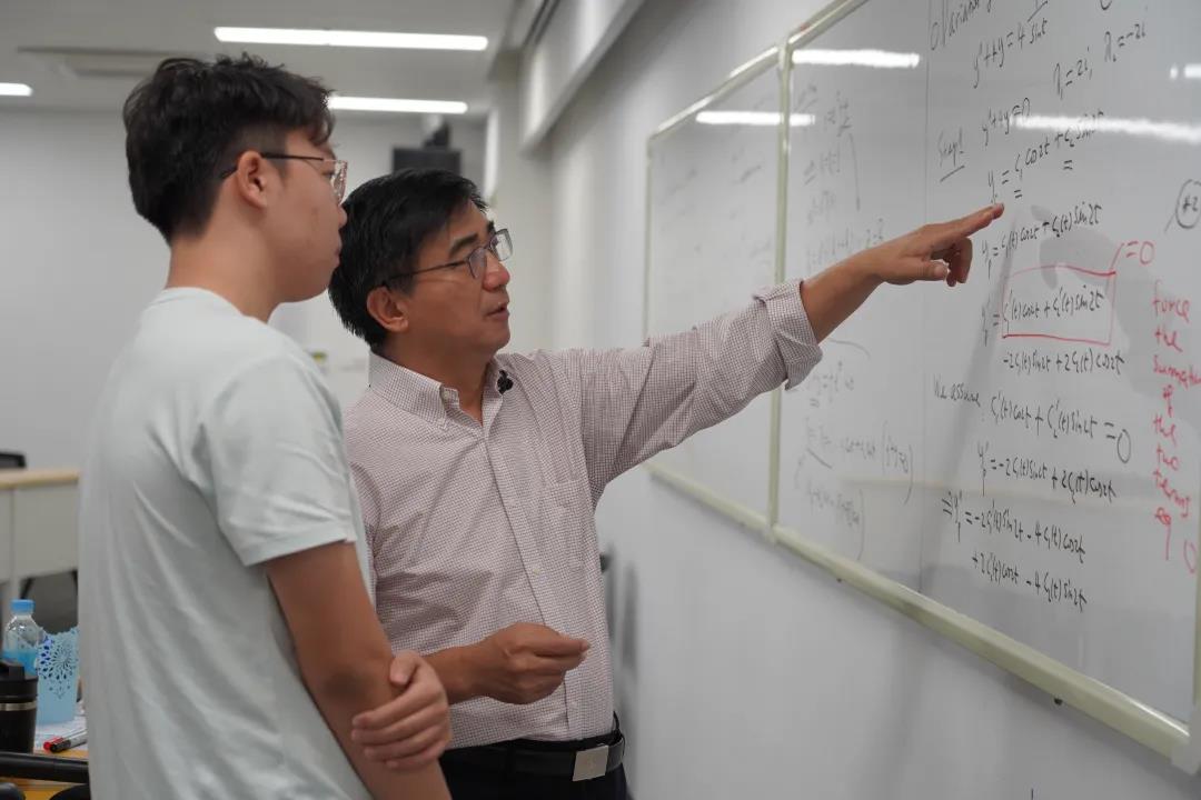 学生与汤涛校长(右)讨论课堂内容