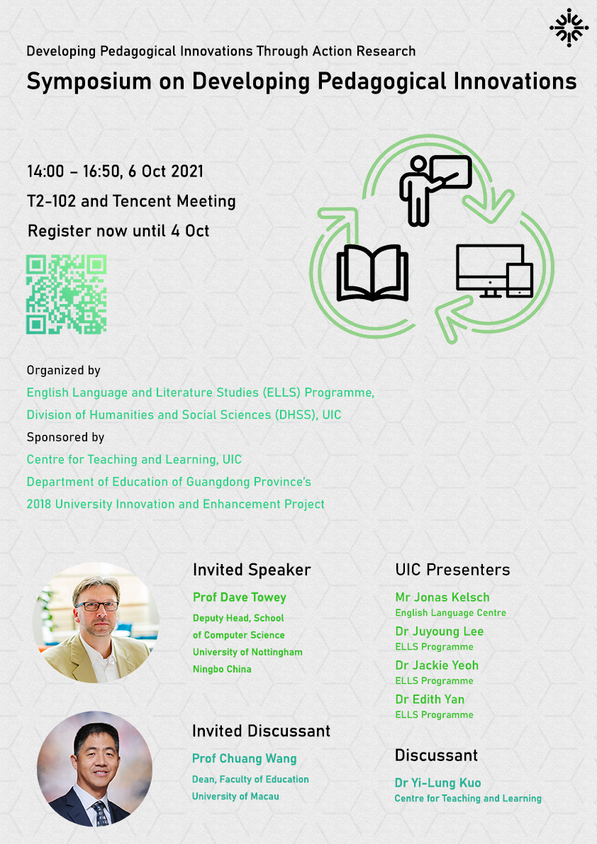 You are sincerely invited to the Symposium on Developing Pedagogical Innovations - Developing Pedagogical Innovations Through Action Research, which is organized by the English Language and Literature Studies Programme, DHSS.