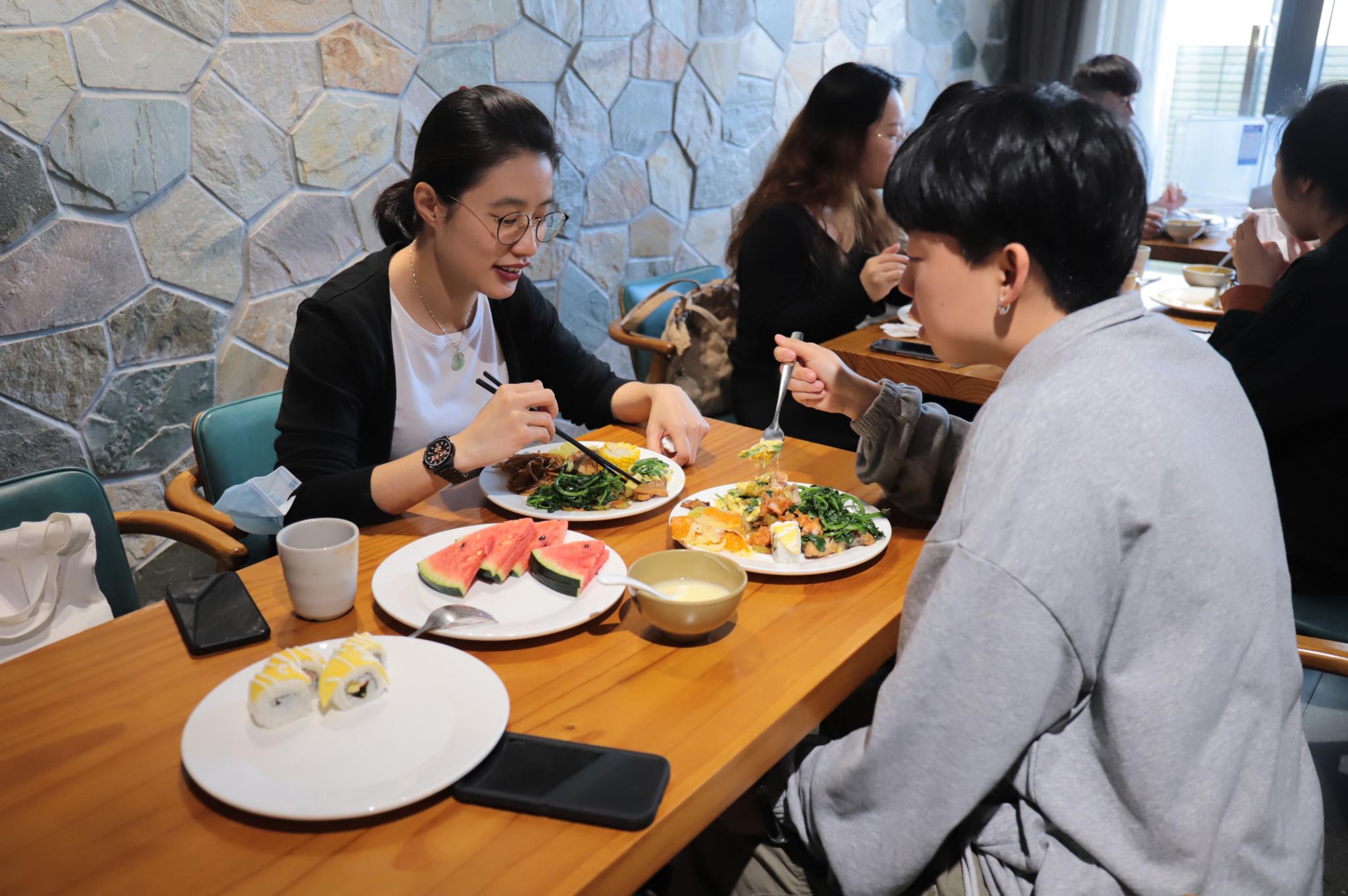 学生和文化与创意学部万婉琪老师(左一)约饭