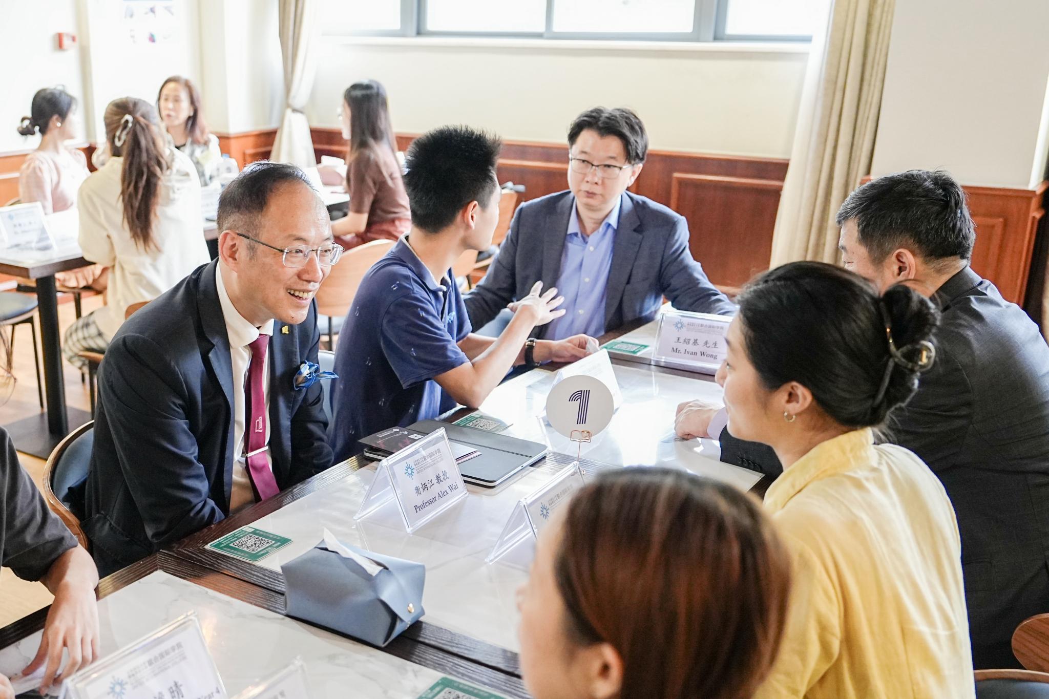 The delegation comprised: Treasurer of the Council, Mr Kevin Liem; Honorary Trustee of the Foundation, Dr Liu Chak-wan; Members and Co-Chairmen of the Entrepreneur Committee of the Foundation, Ms Connie Wong and Dr Stanley Yim; Co-Chairmen of the Young Entrepreneurs Committee of the Foundation, Dr Chloe Suen and Mr Ivan Wong; HKBU President and Vice-Chancellor, Prof Alexander Wai; HKBU Vice-President (Teaching and Learning) Dr Albert Chau; HKBU Vice-President (Administration) and Secretary Ms Christine Chow; Senior Advisor to the President Prof Rick Wong, and more.