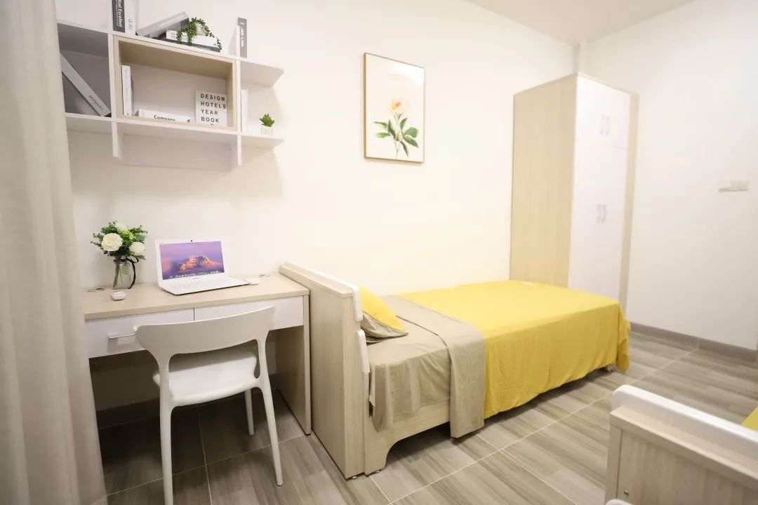 According to the current design, the dormitory contains two bedrooms, one living room and a balcony with an indoor area of 45.36 m² (not including corridors and public spaces). Every residence hall is equipped with a 24-hour study room, a laundry room on each floor, and common areas for cooking and dining with induction cookers and refrigerators.
