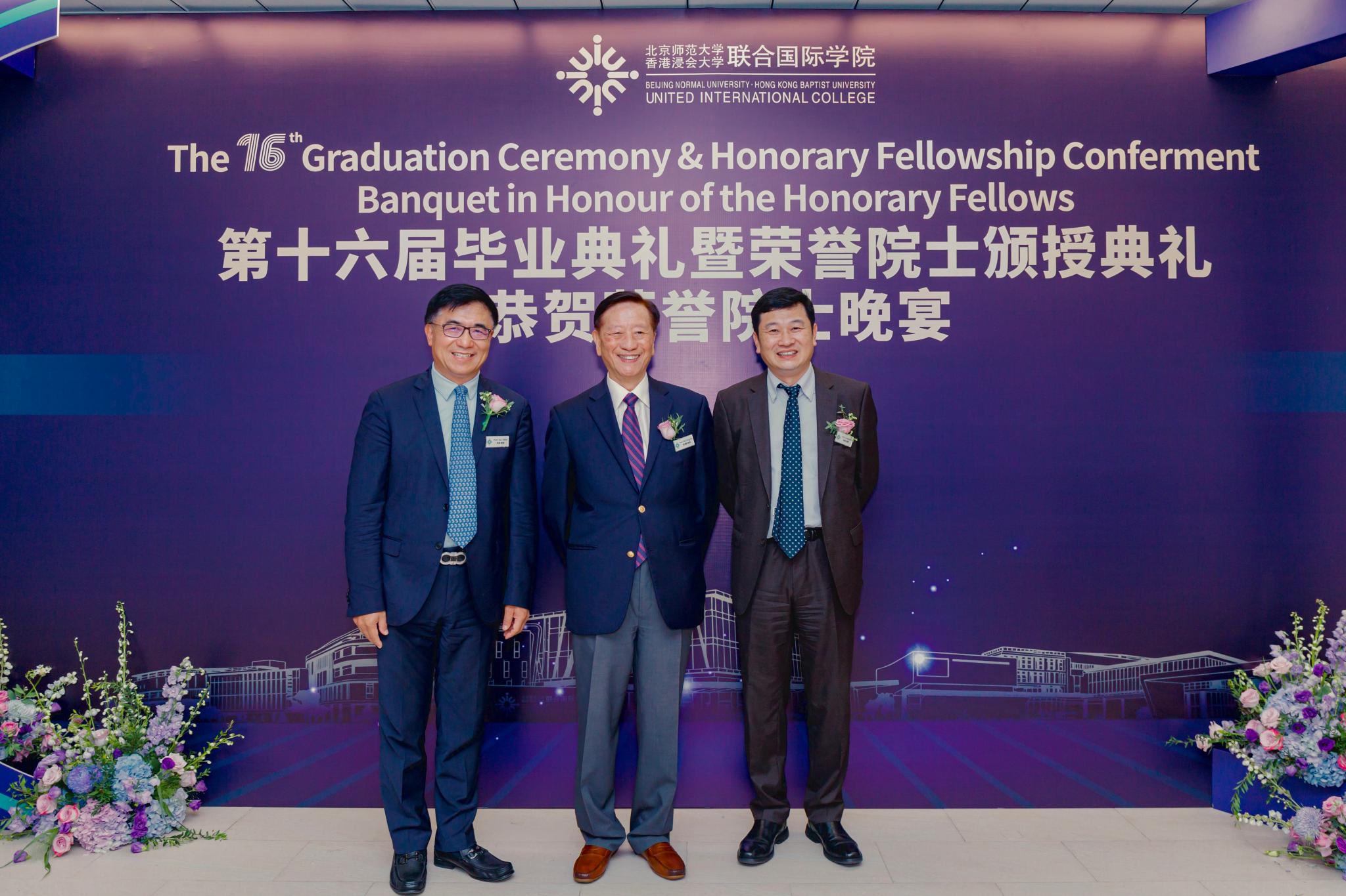 Founding President of UIC Prof Ng Ching-Fai (middle) with UIC's second President Prof Tang Tao (left) and UIC's current President Prof Chen Zhi (right)