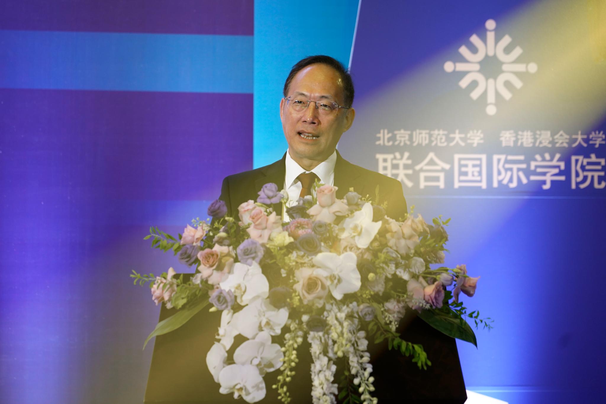 Executive Vice President of Beijing Normal University, Chairman of the UIC Council Dr Wang Shoujun delivers a speech at the dinner