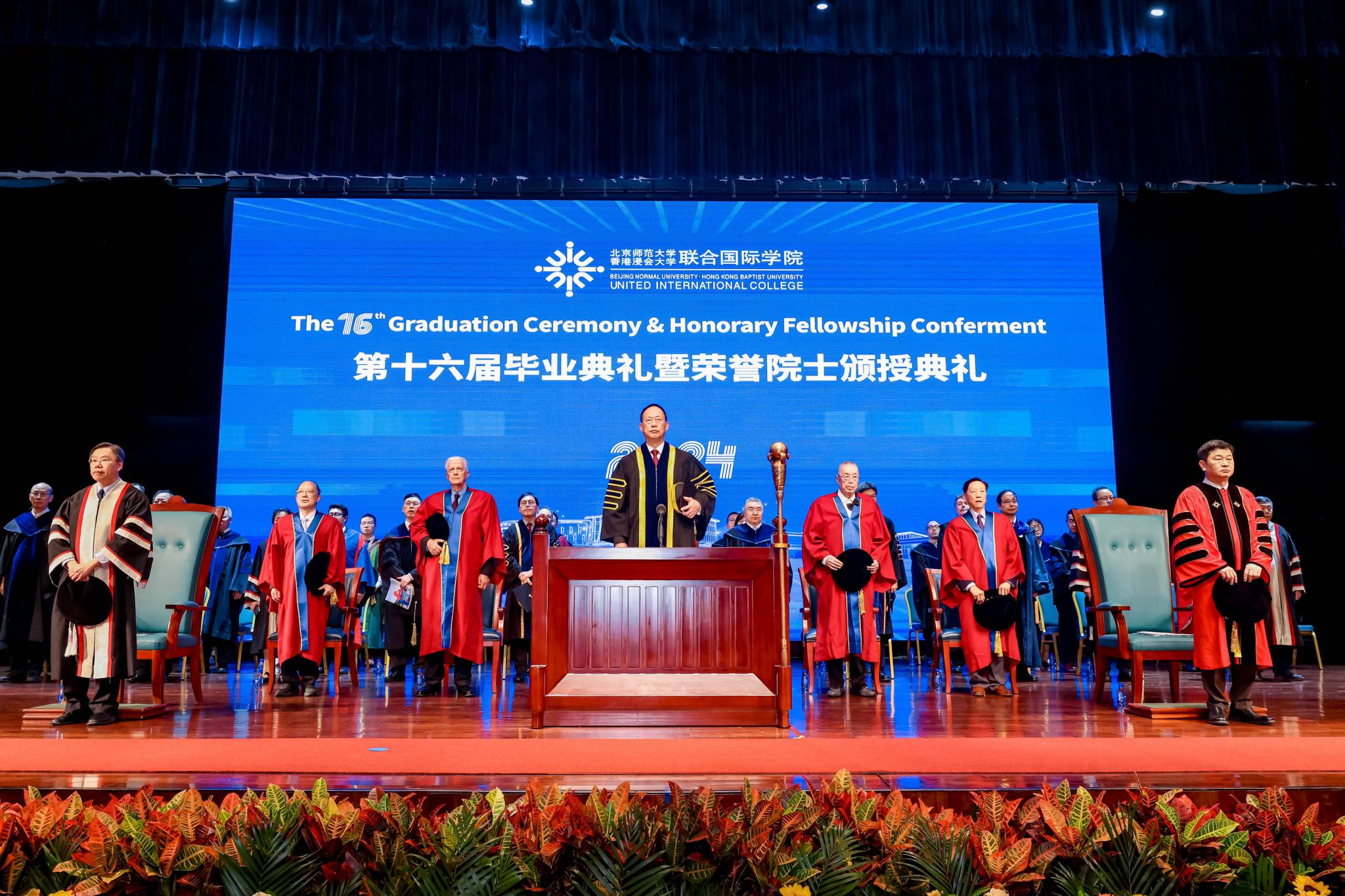 A vote of thanks was given by Prof Ng Ching-Fai on behalf of the Honorary Fellows. He reviewed the glories and achievements of the Fellows and then recalled UIC's development as China's first liberal arts university. He pointed out that liberal arts education is "to train our next generation as well-rounded creative thinkers, servants of the community and effective cross-cultural communicators, negotiators across differences." (Read more: Vote of Thanks by Honorary Fellow Professor Ng Ching-Fai)