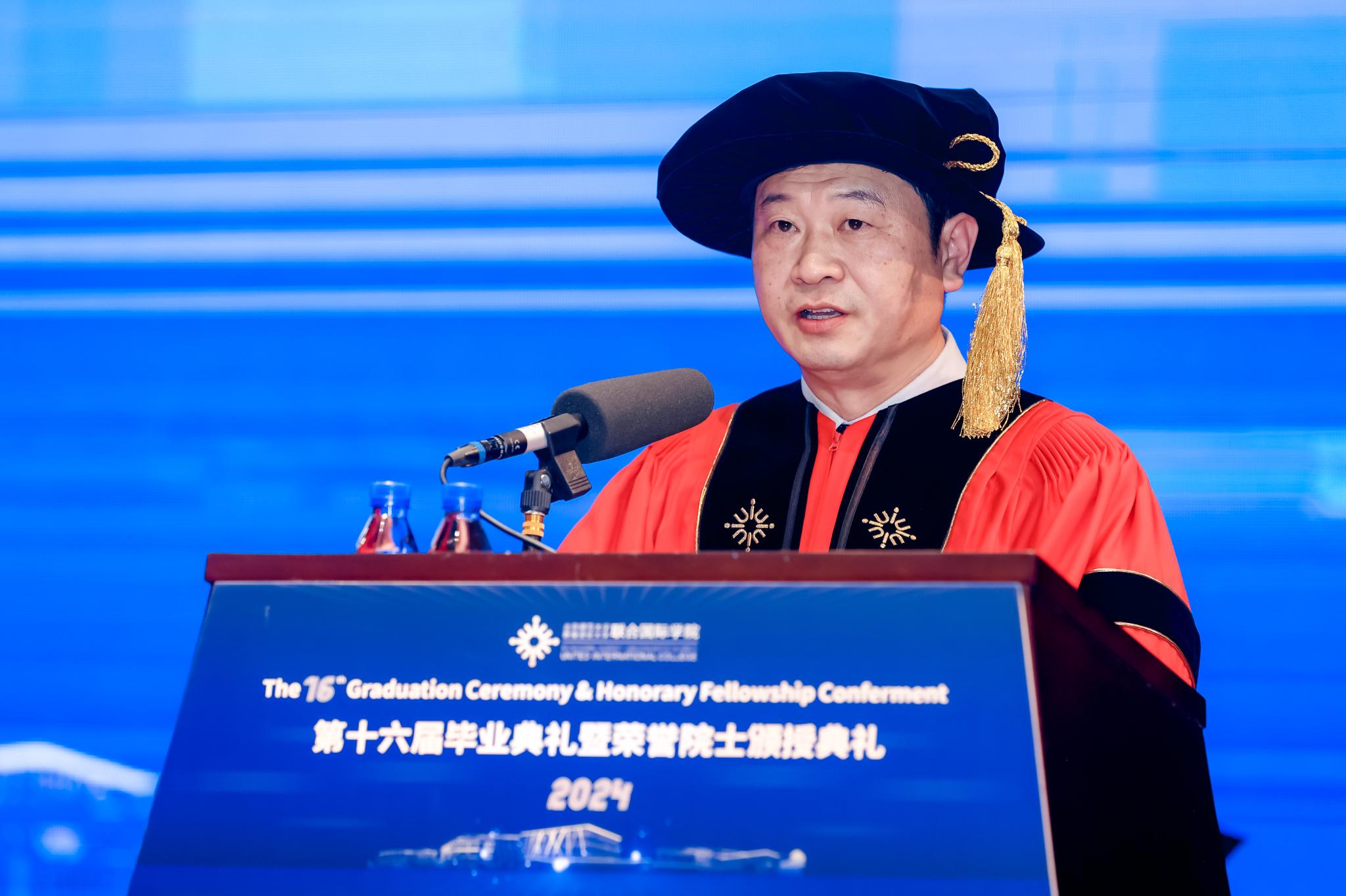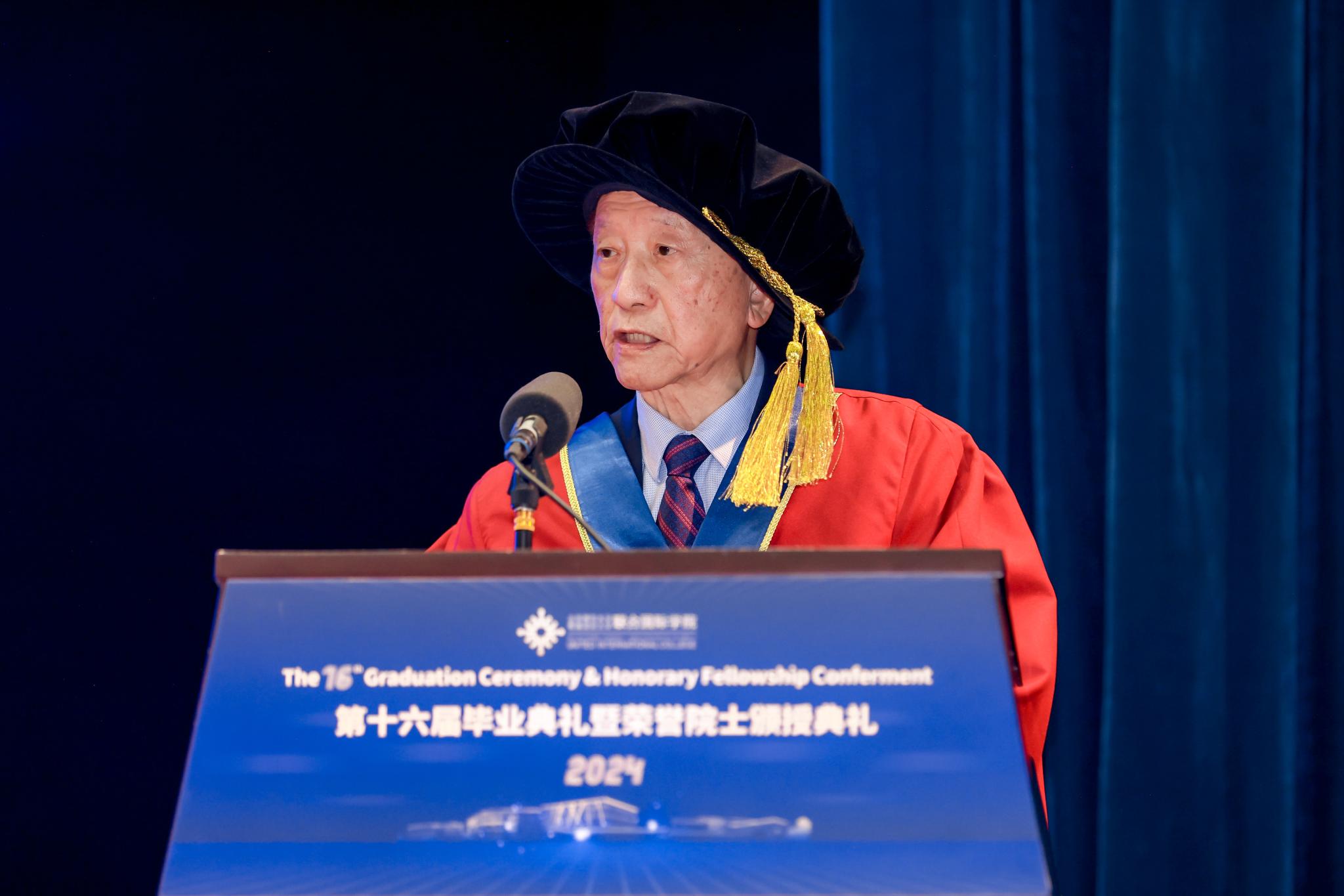 UIC President Prof Chen Zhi spoke at the award ceremony. He said that UIC expects the students to actively assume social responsibility while demonstrating their interdisciplinary skills and learning from the four Honorary Fellows.