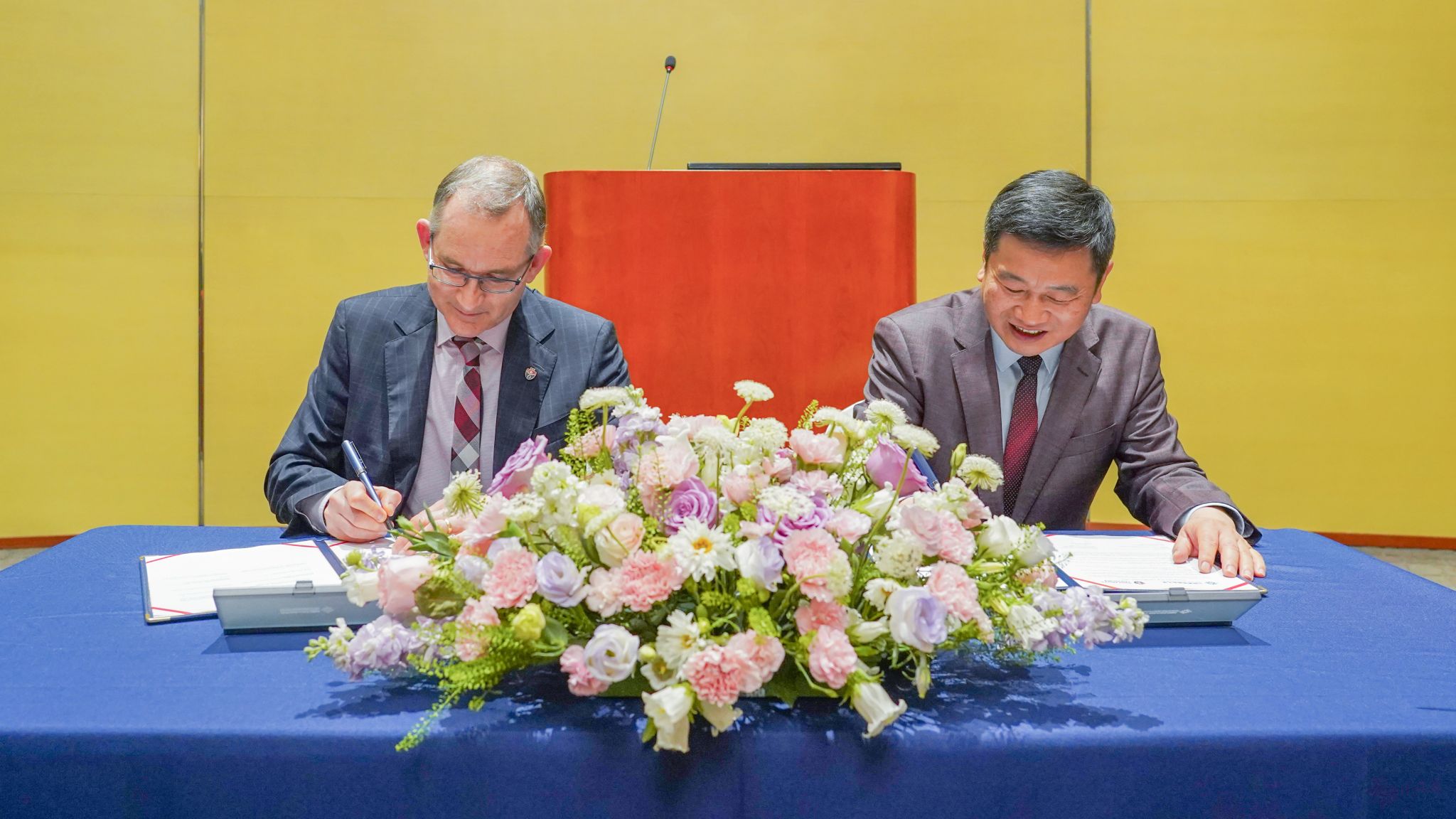 Dr Robert Summerby-Murray (left) and Prof Chen Zhi sign the MoU