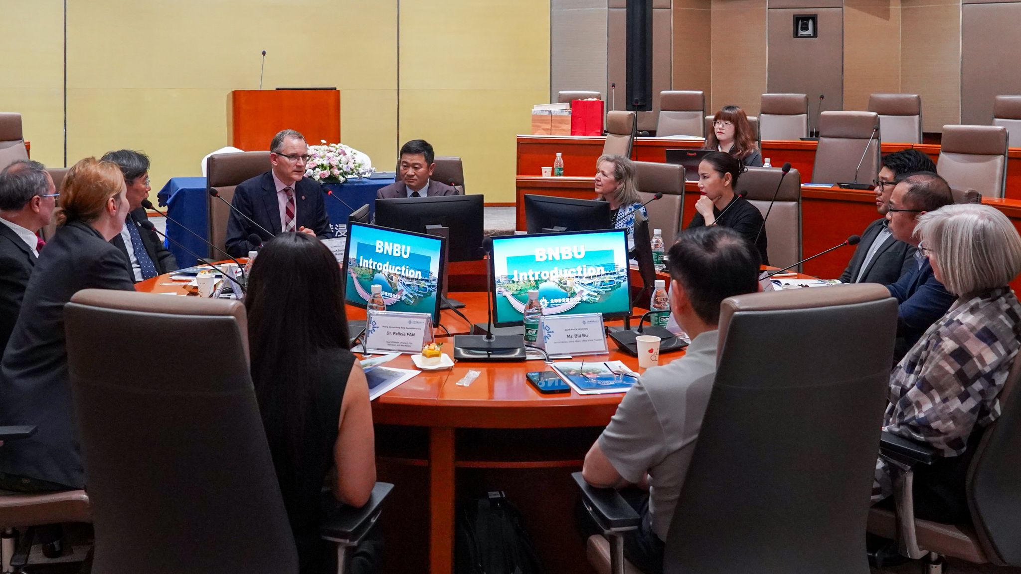 BNBU senior management also attended the meeting, including Provost and Acting Associate Vice President (Internationalisation) Prof Patrick Chau; Dean of the Faculty of Business and Management Prof Adolf Ng; Dean of the Faculty of Humanities and Social Sciences Prof Tze-ki Hon; Acting Dean of Faculty of Science and Technology Prof Ye Huajun; Assistant to President, Deputy Registrar of Academic Registry and Chief Strategic Development Officer Ms Ashura Lam; and Head of Master of Arts in Film, Television and New Media Dr Felicia Fan from the School of Culture and Creativity.