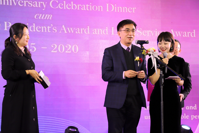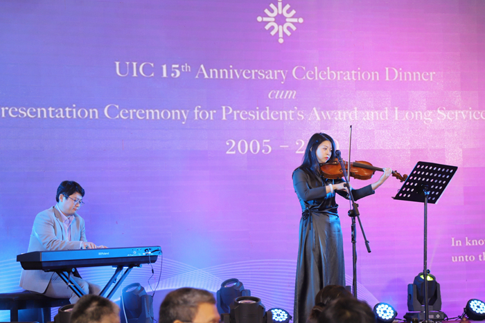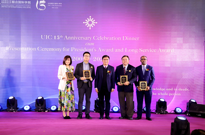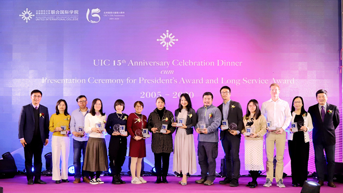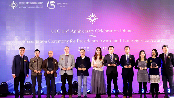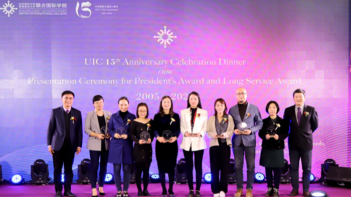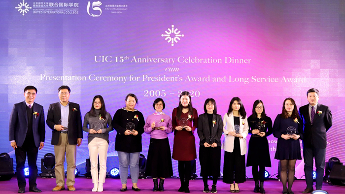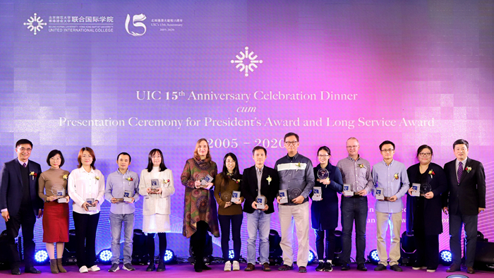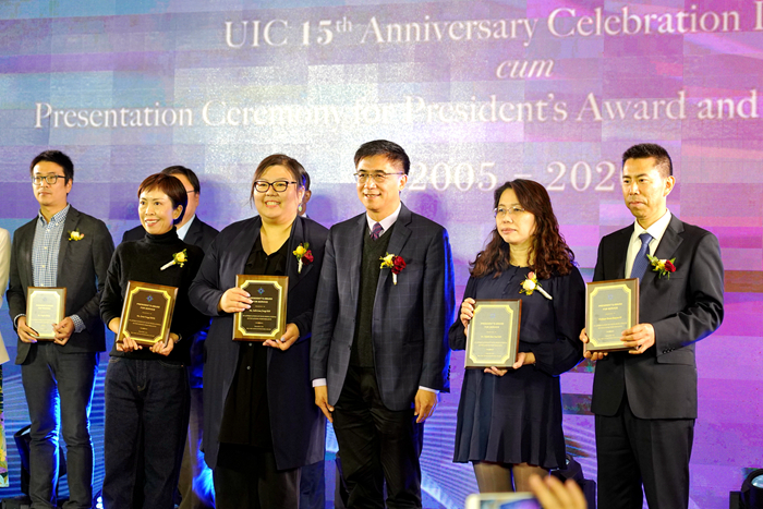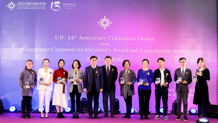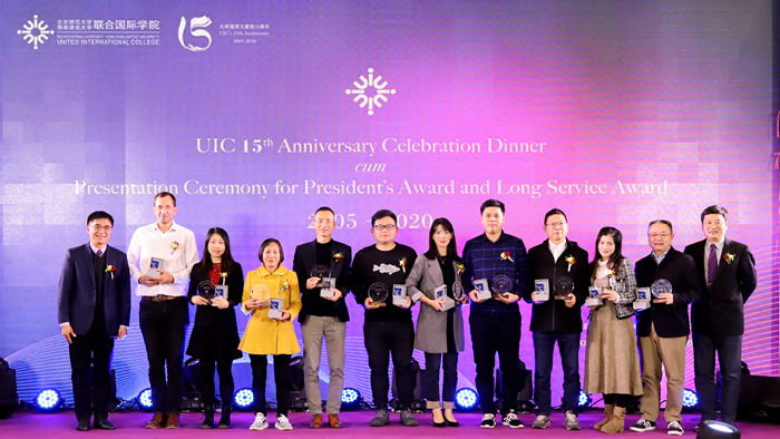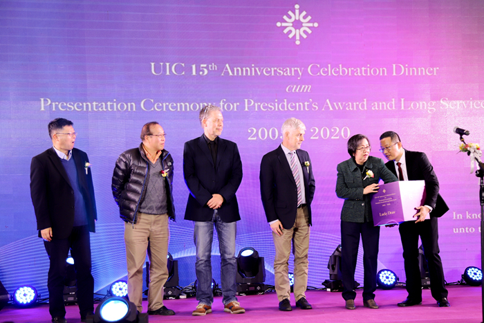 A total of 89 staff members received the long service award at the party. Twenty-three of them have been serving at UIC since the very beginning, which was 15 years ago, and 69 of them have spent more than ten years at UIC.