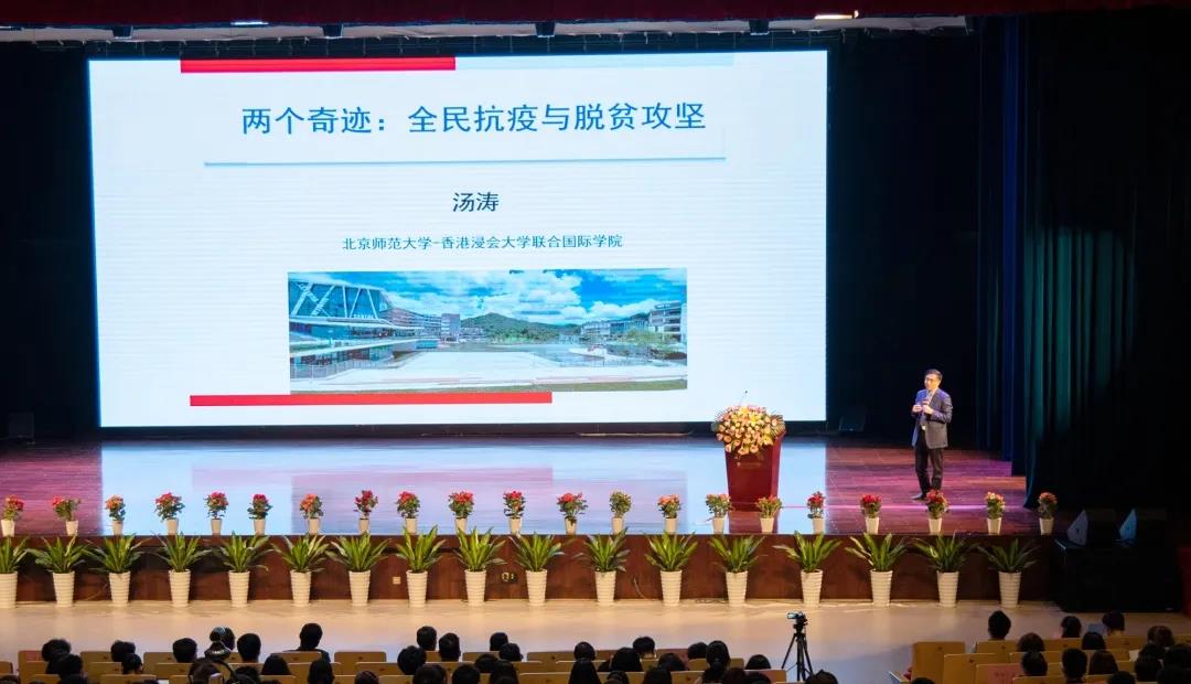 UIC President and Member of the Chinese Academy of Sciences, Prof Tang Tao, talked of "Two Miracles: Nationwide Anti-COVID-19 Battle and Battle of Poverty Alleviation" in the University Hall during the afternoon of 24 March. In this lecture, President Tang talked about the great miracles created by the Chinese people in this century of historical changes. President Tang hopes that students will strengthen their sense of social responsibility.