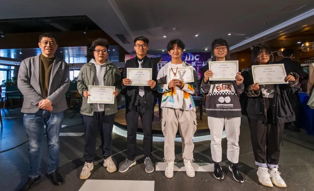 Guest judges Chen Mo (first from left), Zhong Hui (second from left) and Zhan Li (first from right) present awards to the winners of the best innovation award